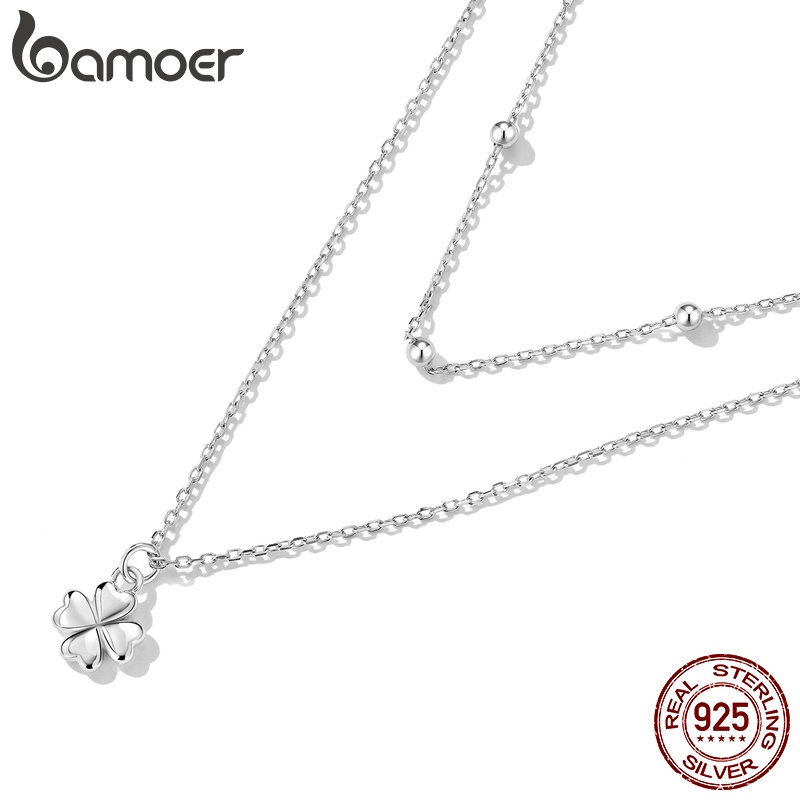 Bamoer Colar De Pingente De Prata 925 Clover Camada Dupla Pattren Moda Jóias Para Mulheres Meninas Presente