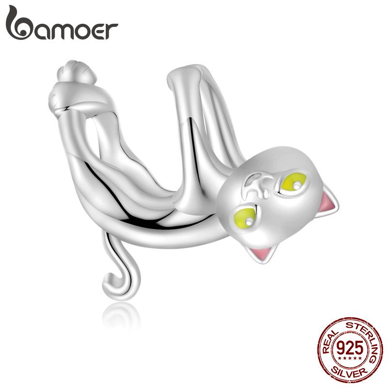 Bamoer 925 Sterling Sliver Charms Pendants Design Animal Cute Cat Collection Acessórios Para Pulseiras DIY SCC2572