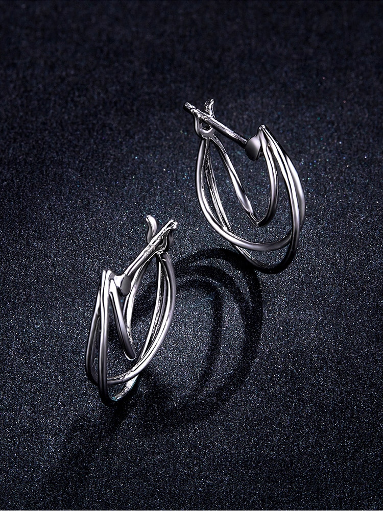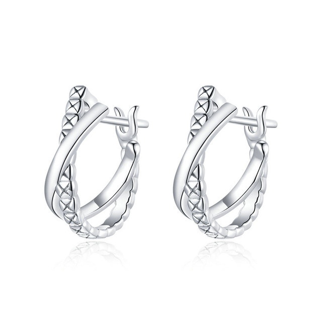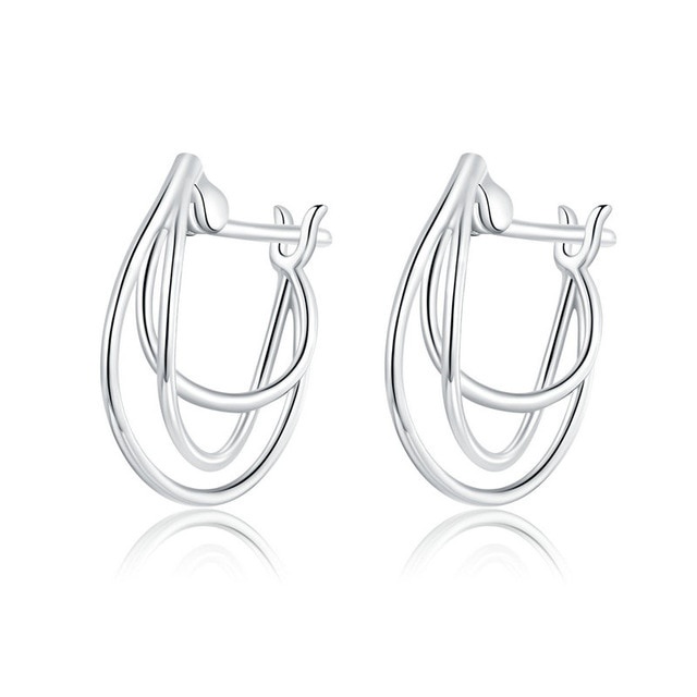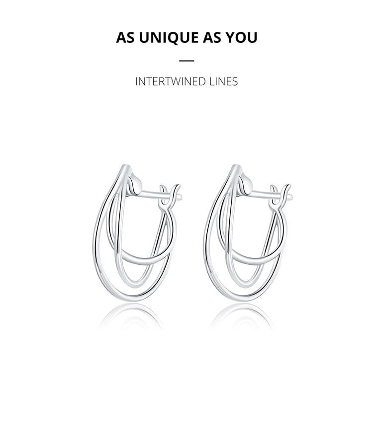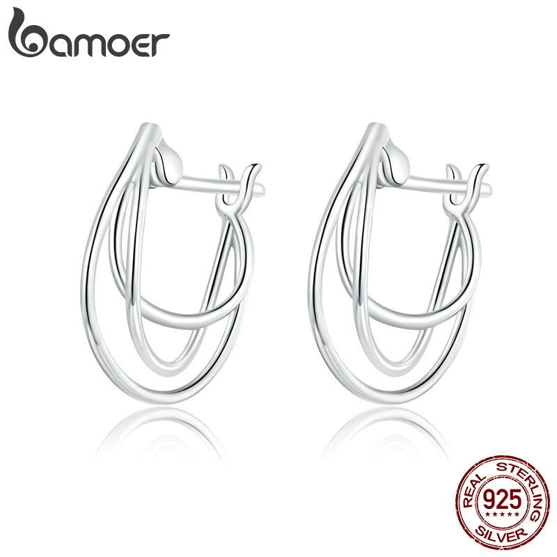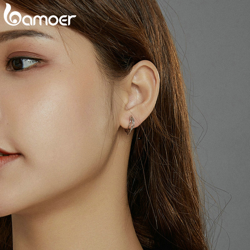 Bamoer 925 Sterling Silver Intertwined Lines Brincos De Argola Francês Para Mulheres Minimalista Simples Boucle Oreille BSE443