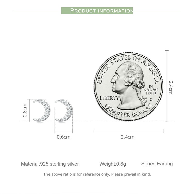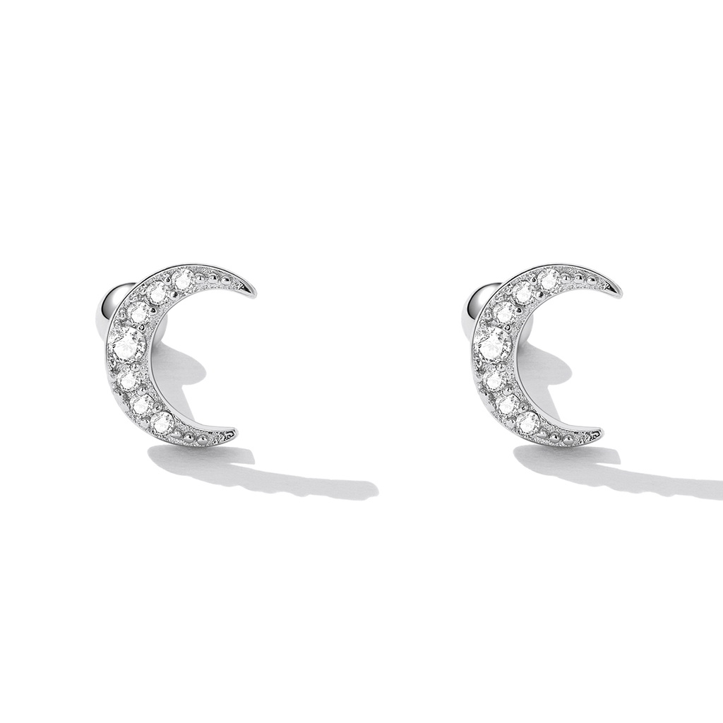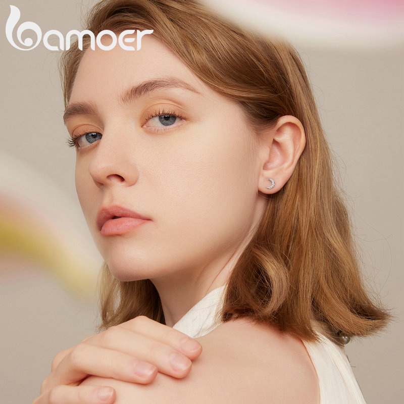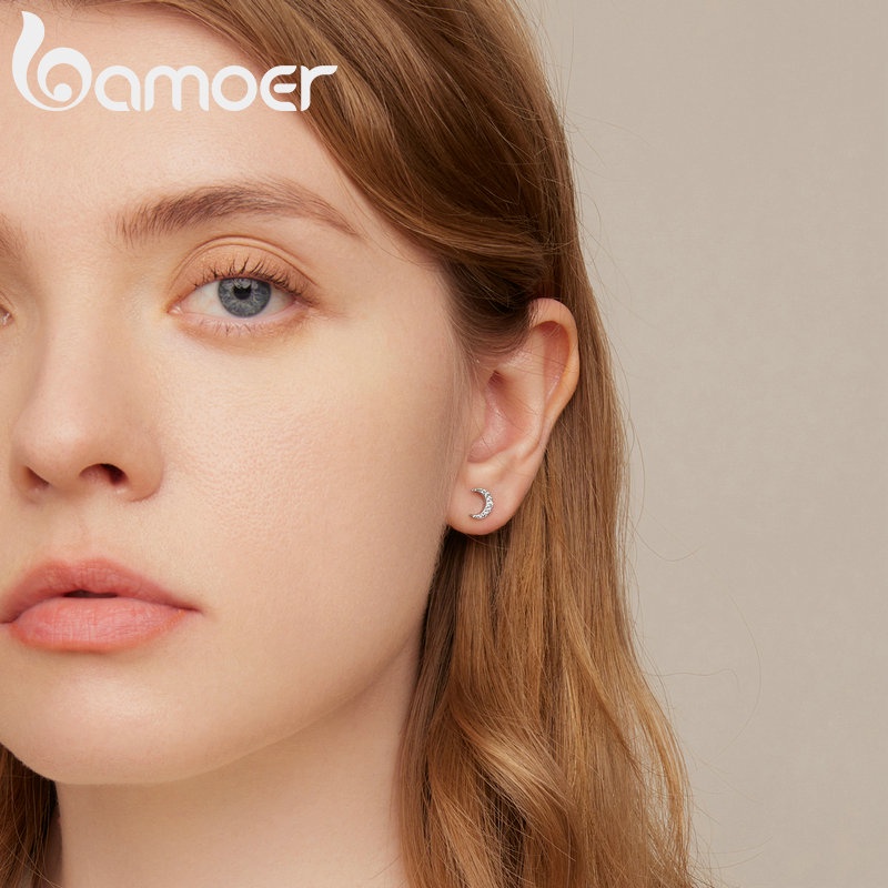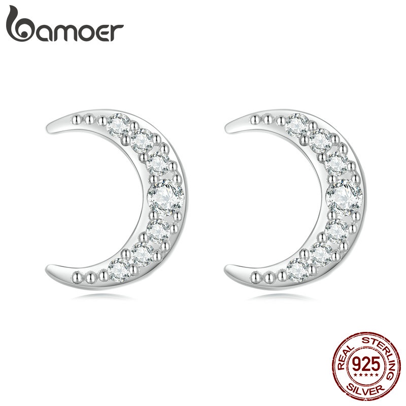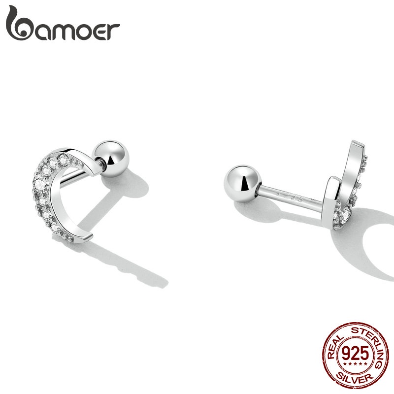 Bamoer 1 Par De Brincos De Prata Esterlina 925 Com Lua Tarraxa Versátil