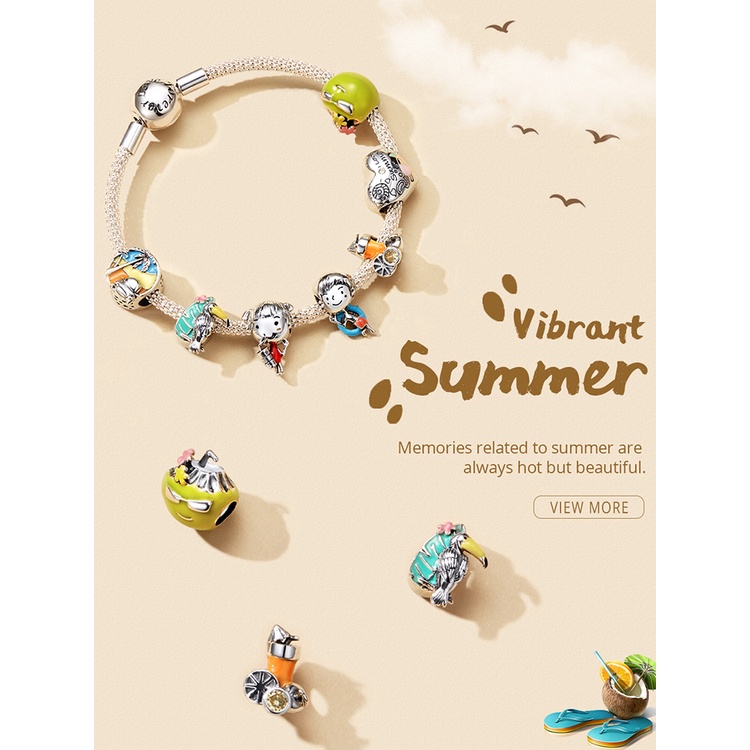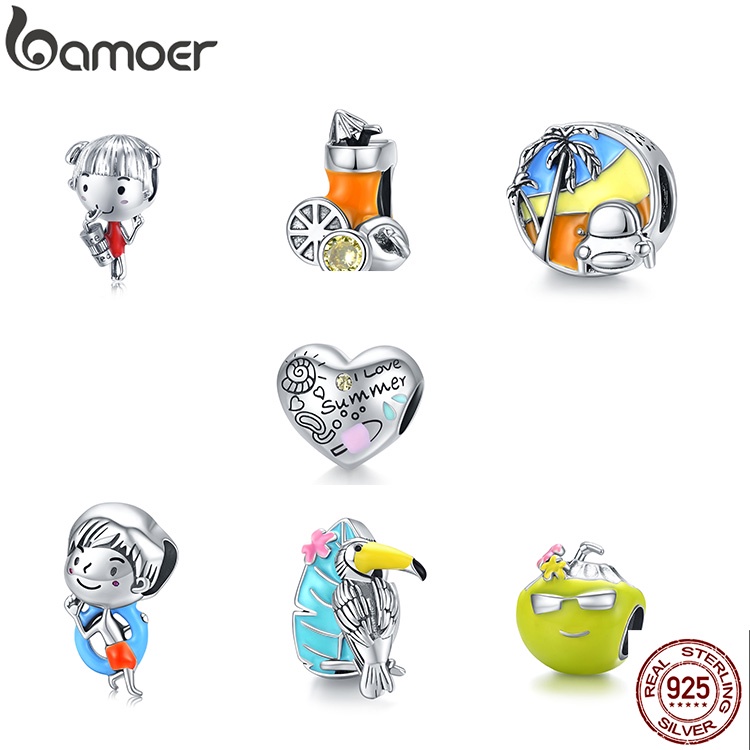 Bamoer Verão Série Prata 925 Charmosas Para Pulseira E Colar Acessórios De Joias DIY