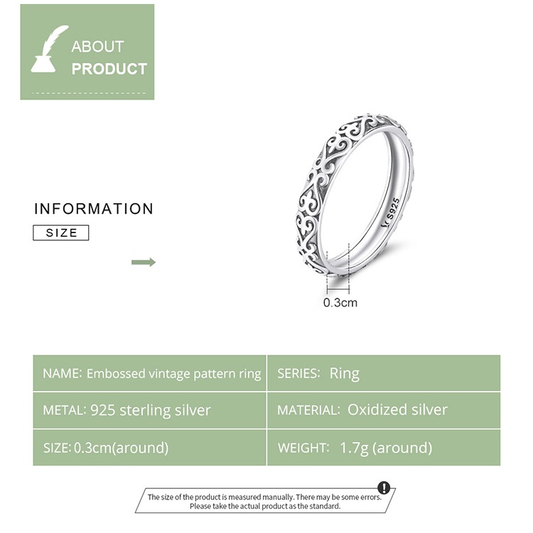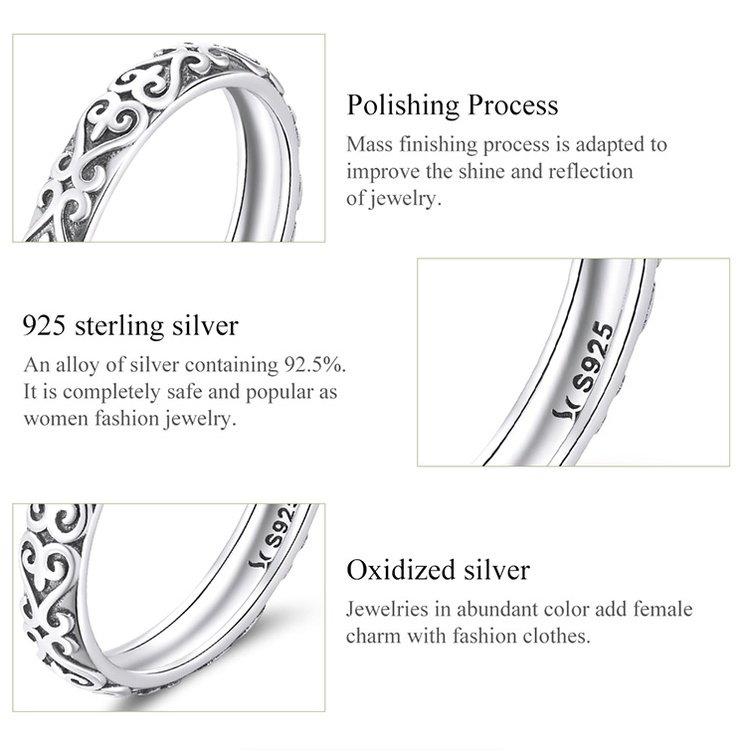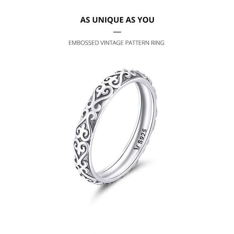 Bamoer Silver 925 Padrão vintage Em Relevo Zircon Ring Fashion Jewelry Presentes Para Mulheres SCR776