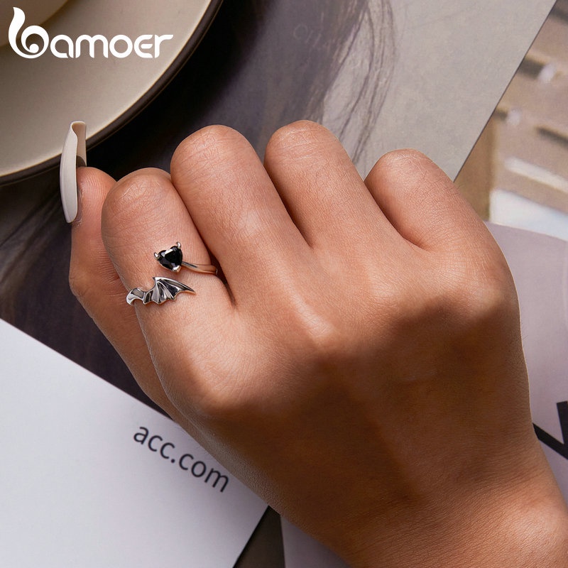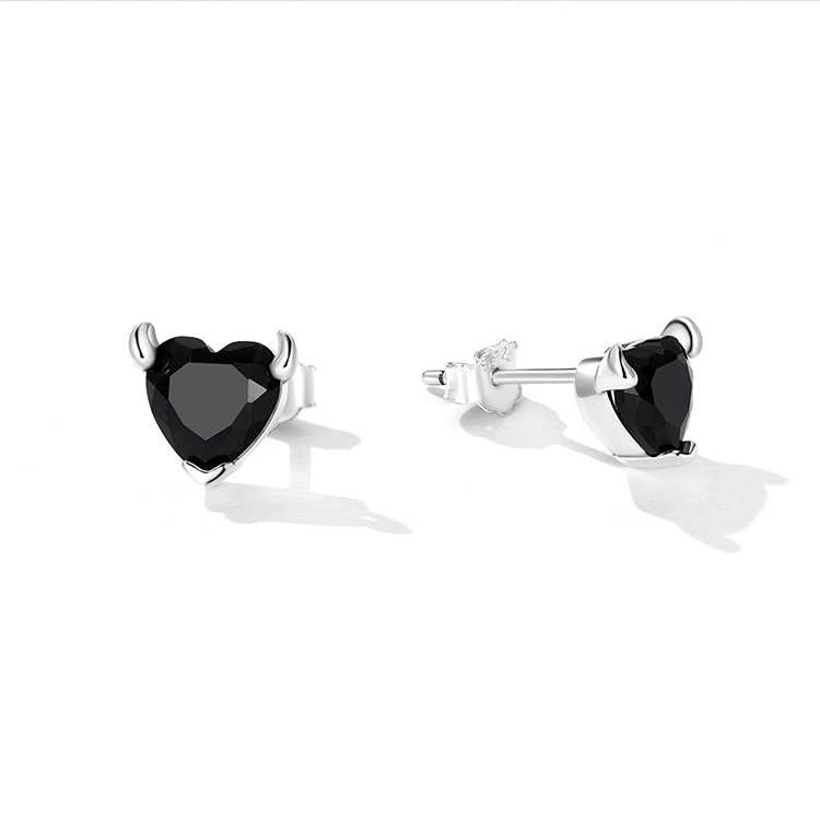Bamoer Brincos Colar Anel De Prata 925 Diabo Coração Preto Padrão De Jóias Para As Mulheres Meninas Presente