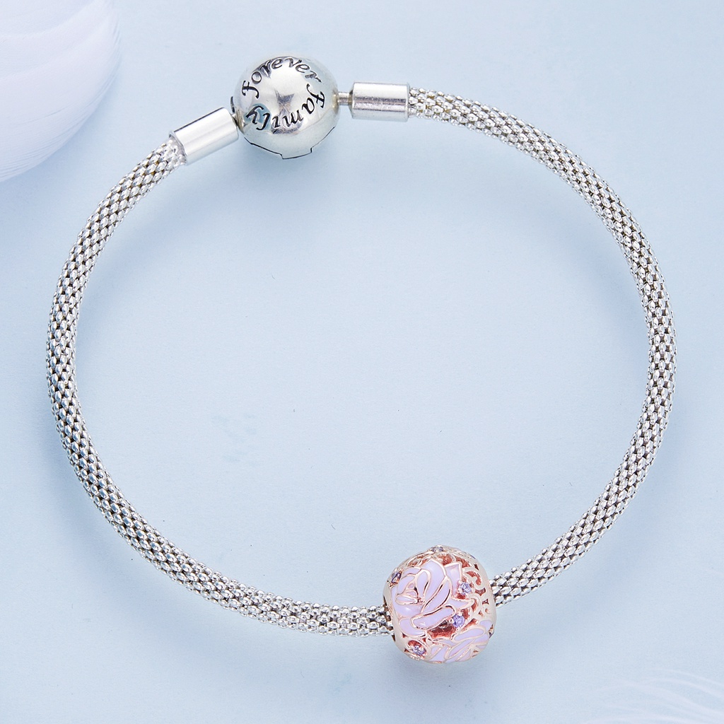 Bamoer Bead 925 Sterling Silver Rose Pendurado Pendnt Moda Colar Jóias Para Mulheres