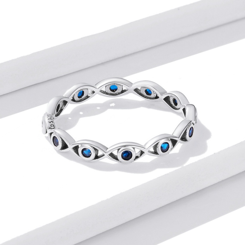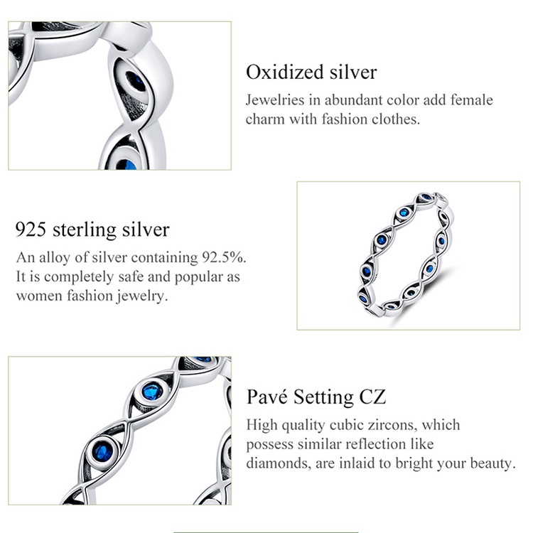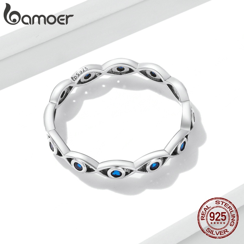 Anel Bamoer 925 Prata Azul De Dedo Da Sorte Anéis De Moda Jóias Presentes Para Mulheres