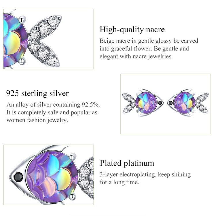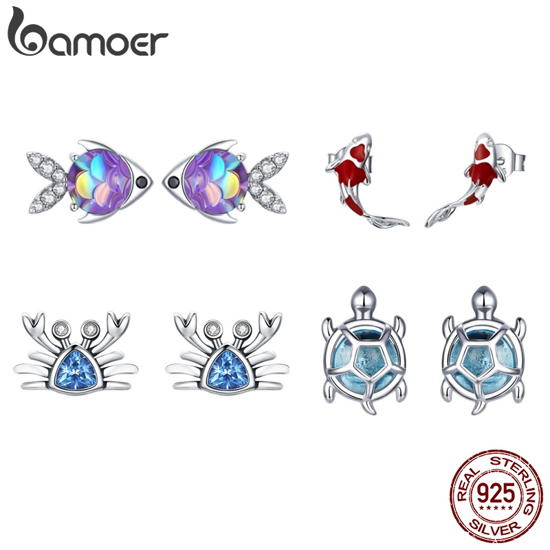 Brincos Bamoer 925 Prata Peixe Tartaruga Marinha Pinos De Orelha Fashion Joias Para Mulheres Presente SCE413