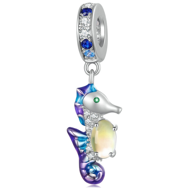 BAMOER 925 Prata Esterlina Colorida Série Animal Beaded Tartaruga Cavalo Marinho Unicórnio Ornamentos Adequados Para Mulheres