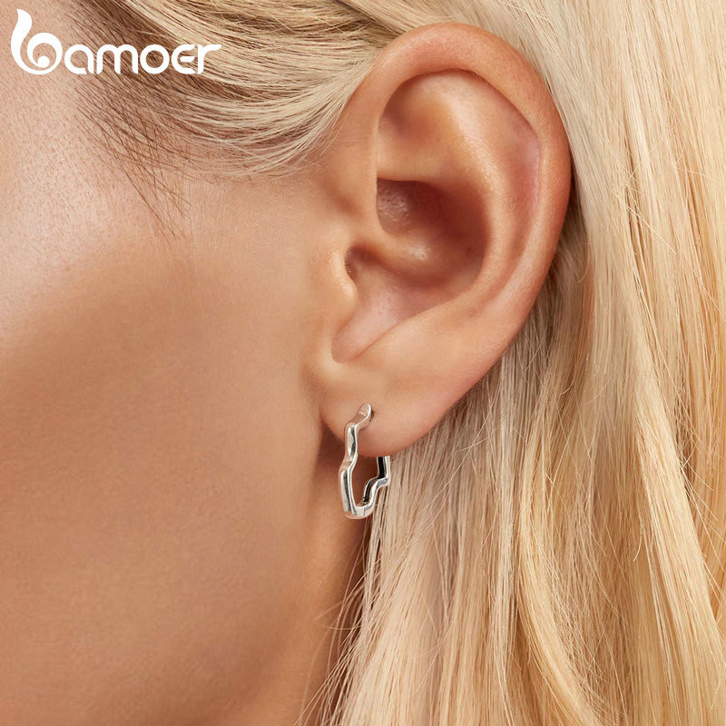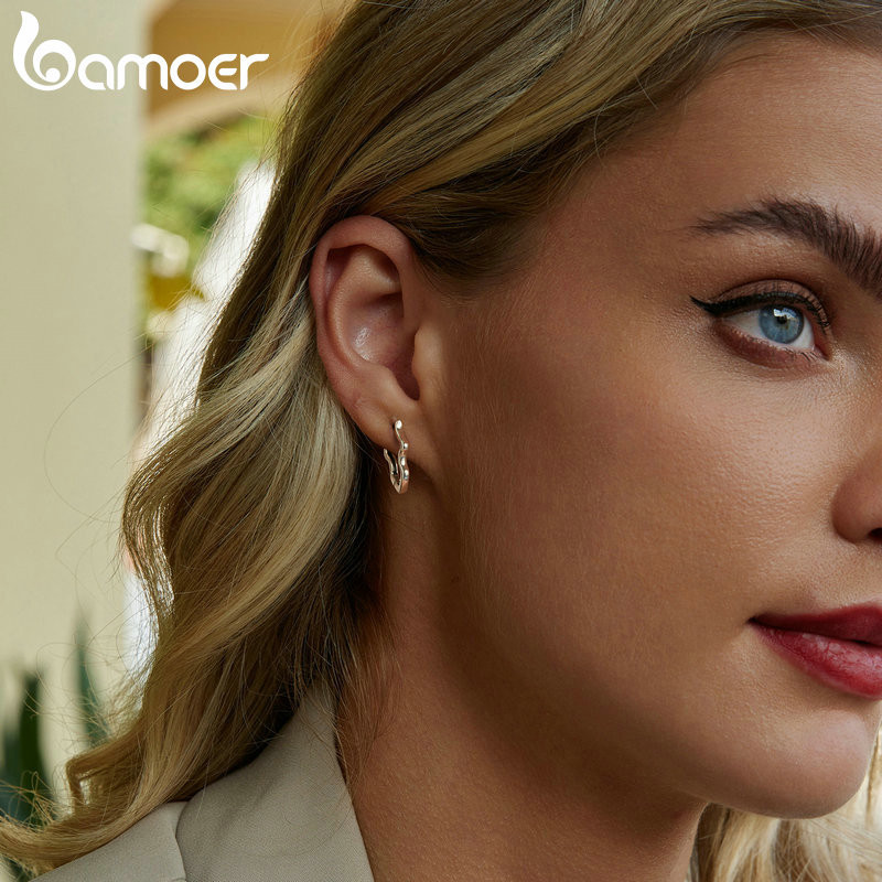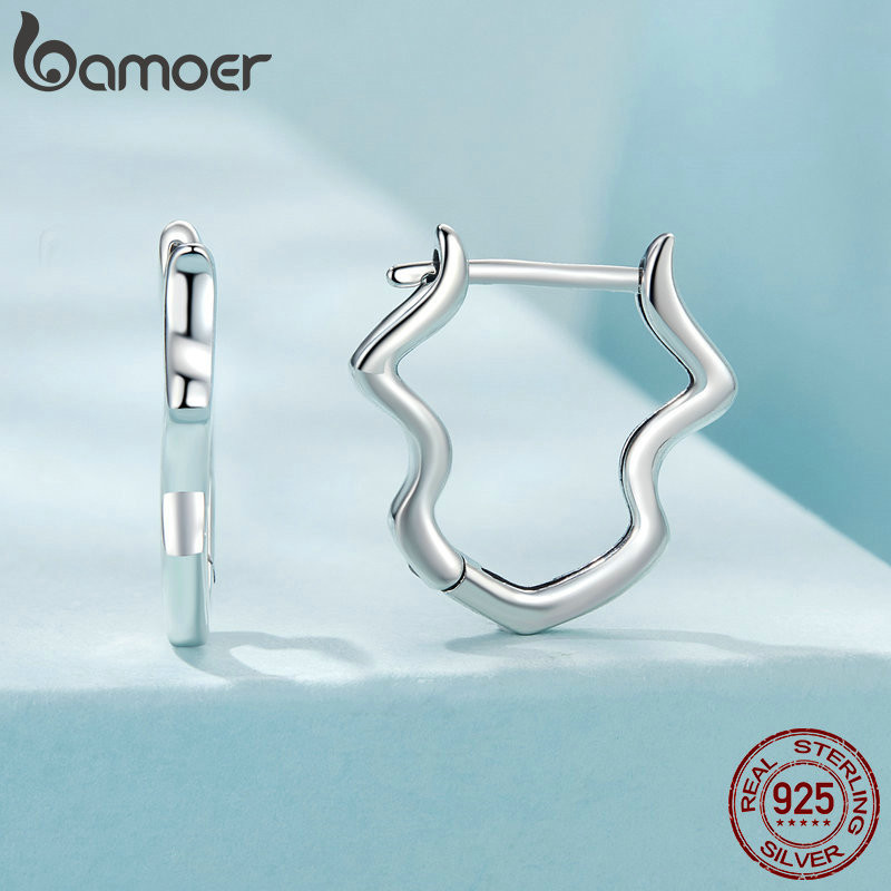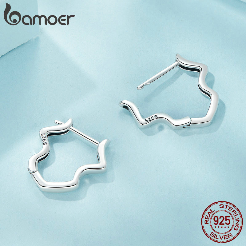 Brincos Bamoer 925 Sterling Sliver Hoop Desenho De Ondas Jóias Presentes Para Mulheres