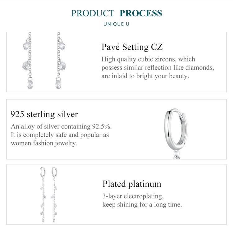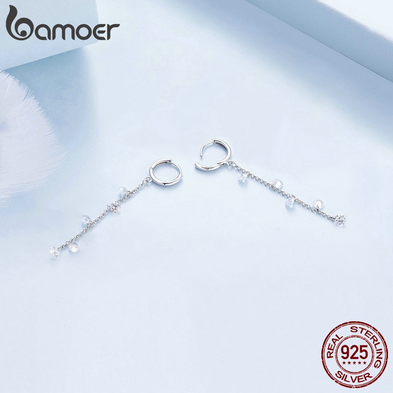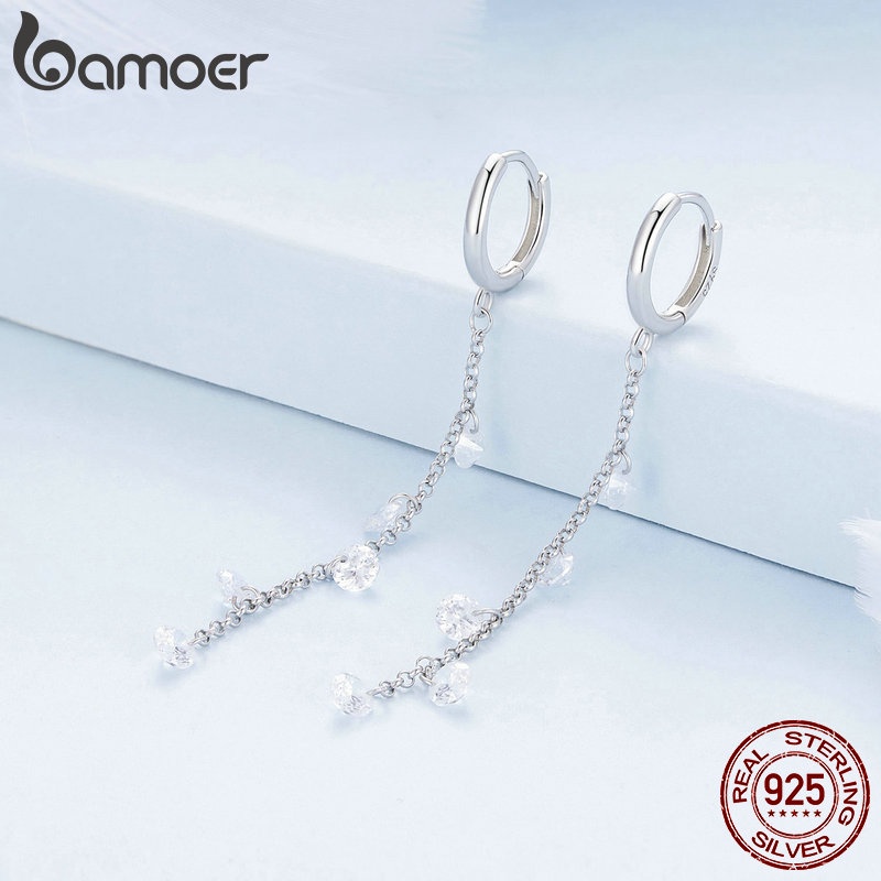 BAMOER 925 Sterling Silver Chain Tassel Brincos De Prata Design Simples Jóias De Moda Para Mulheres