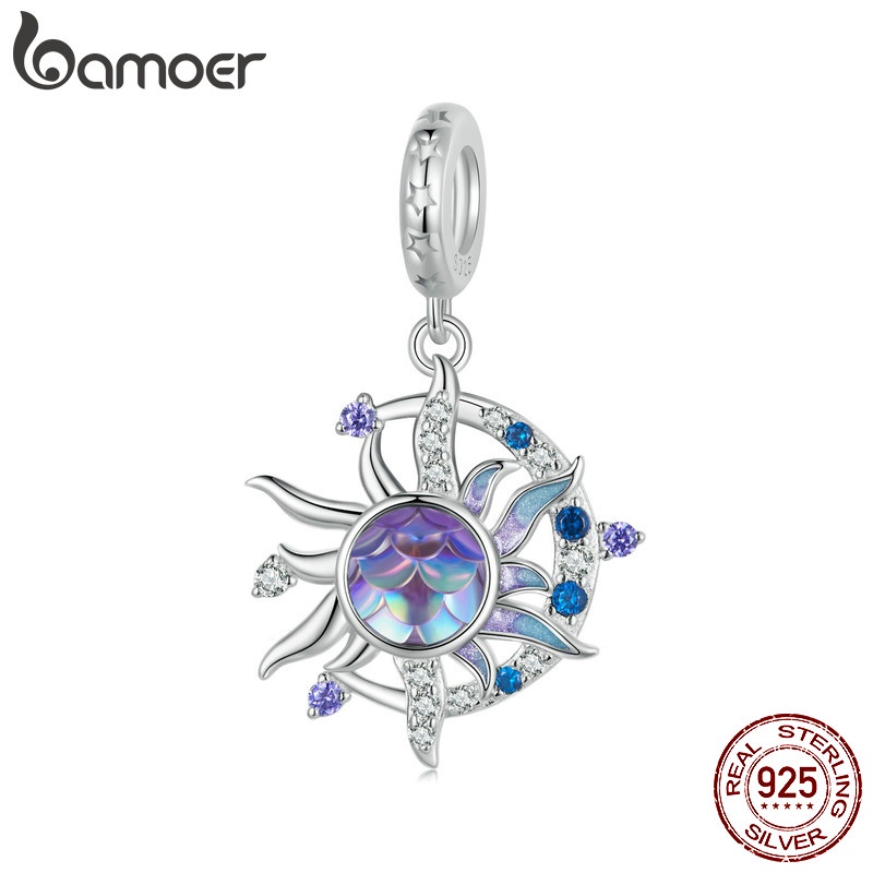 Bamoer 925 Sterling Sliver Charms Pendants Butterfly Sun and Moon Evil Eye Design Blue Purple Magic World Collection Acessórios Para Pulseiras De Bricolage