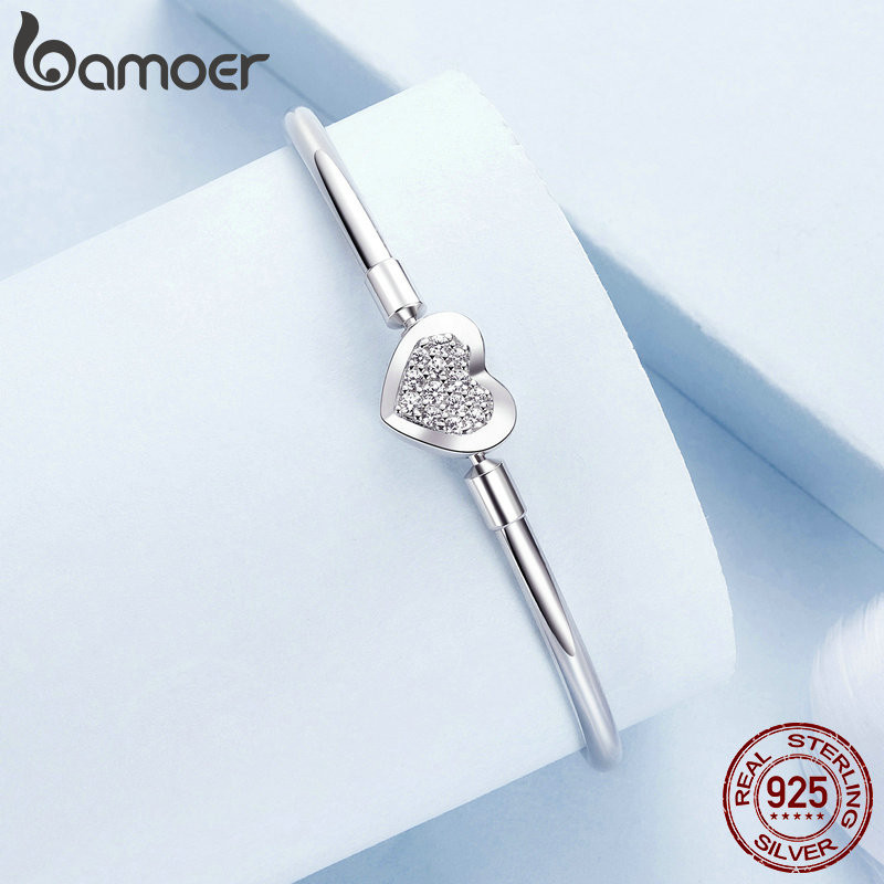 Bamoer Autêntico Pulseira De Prata 925 Sterling Charm Bracelet , Classic Heart/Shell Basic Bangle for Women Beads DIY Jewelry BSB192