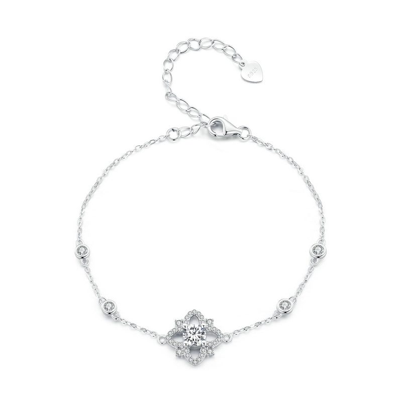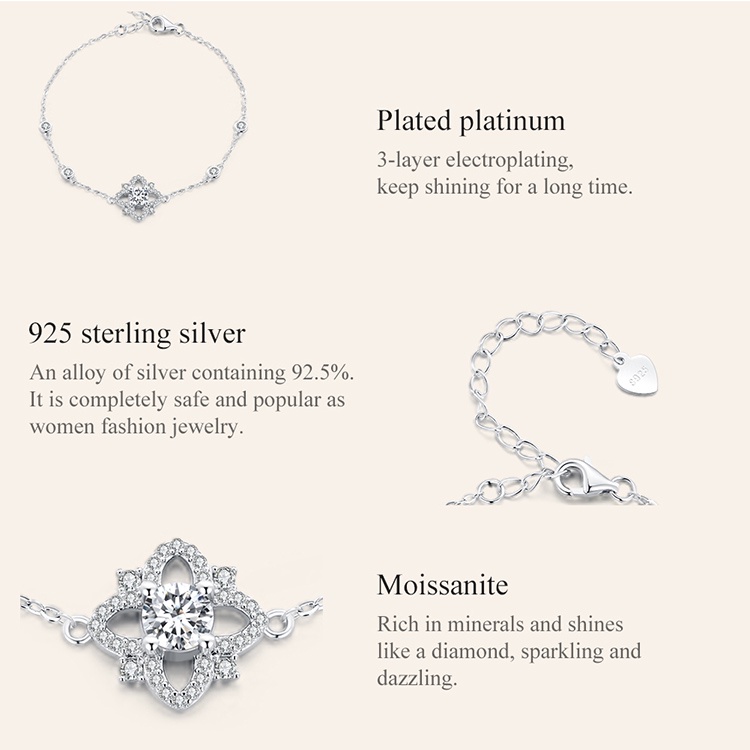 Bamoer Prata 925 Luxo Pulseira De Flor Moissanite Moda Para Mulheres E Estudantes