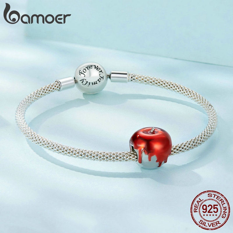 Bamoer 925 Sterling Sliver Charme De Óleo De Gotejamento Vermelho Pingente De Design De Maçã Para Bracelete DIY