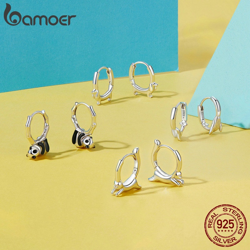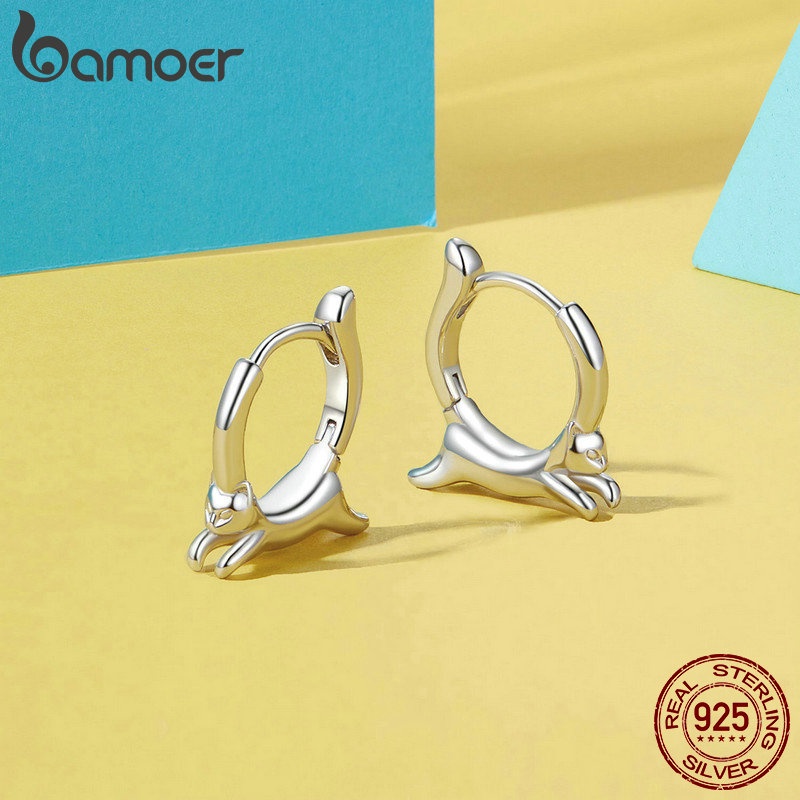 Bamoer 925 Sterling Sliver Earrings Fivelas Design Animal Panda Whale Kitten Dachshund Coleção Jóias Presentes Para Mulheres