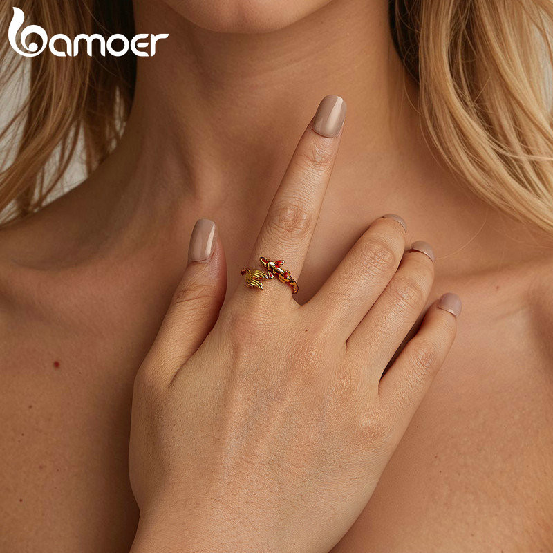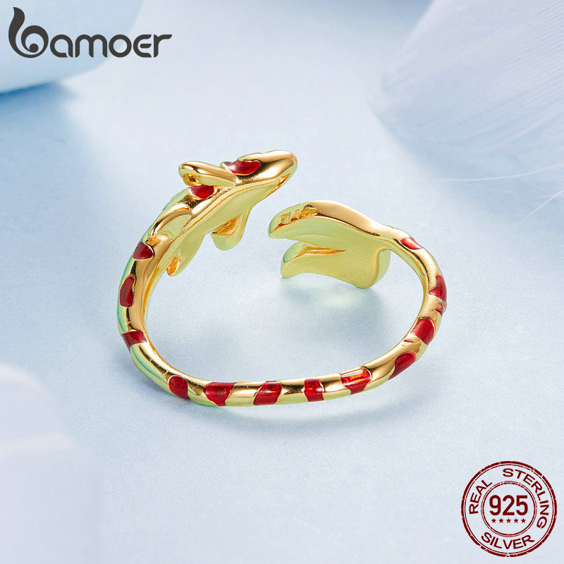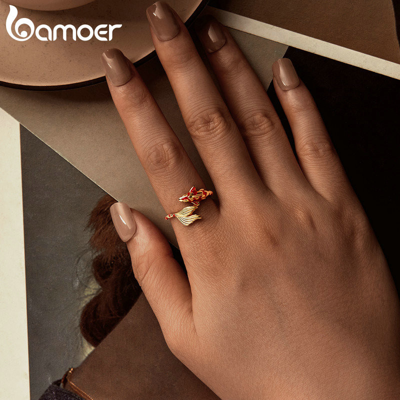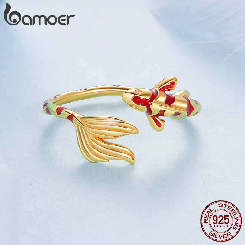 Bamoer 925 Sterling Sliver Fita Aberta Anel Koi Design Jóias De Moda Presentes Para Mulheres