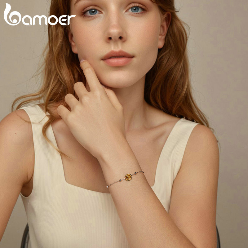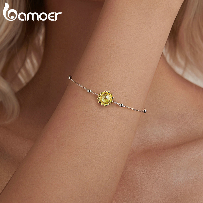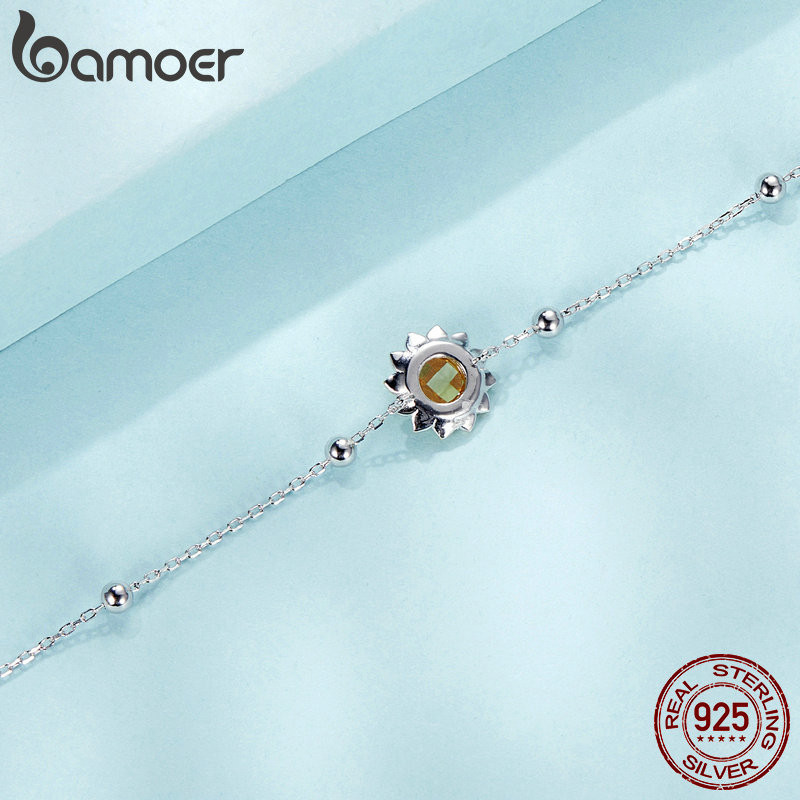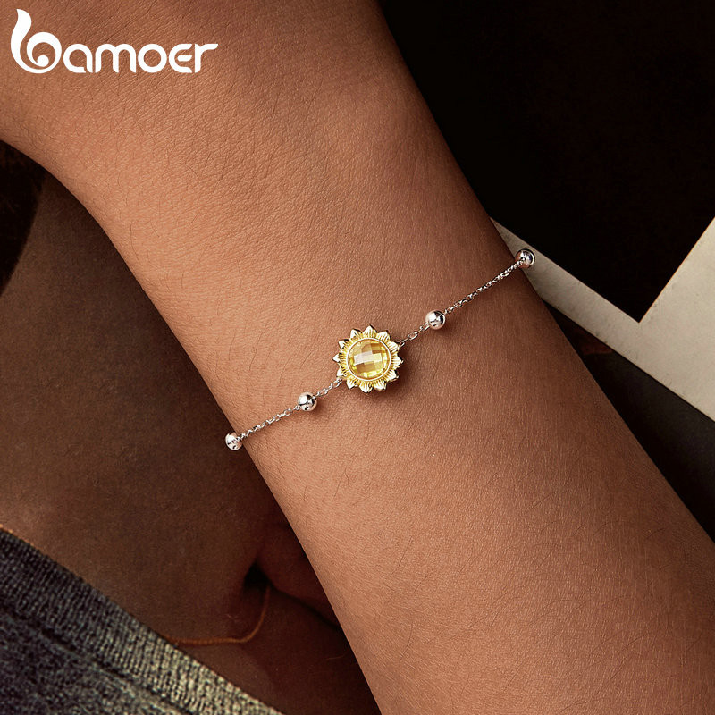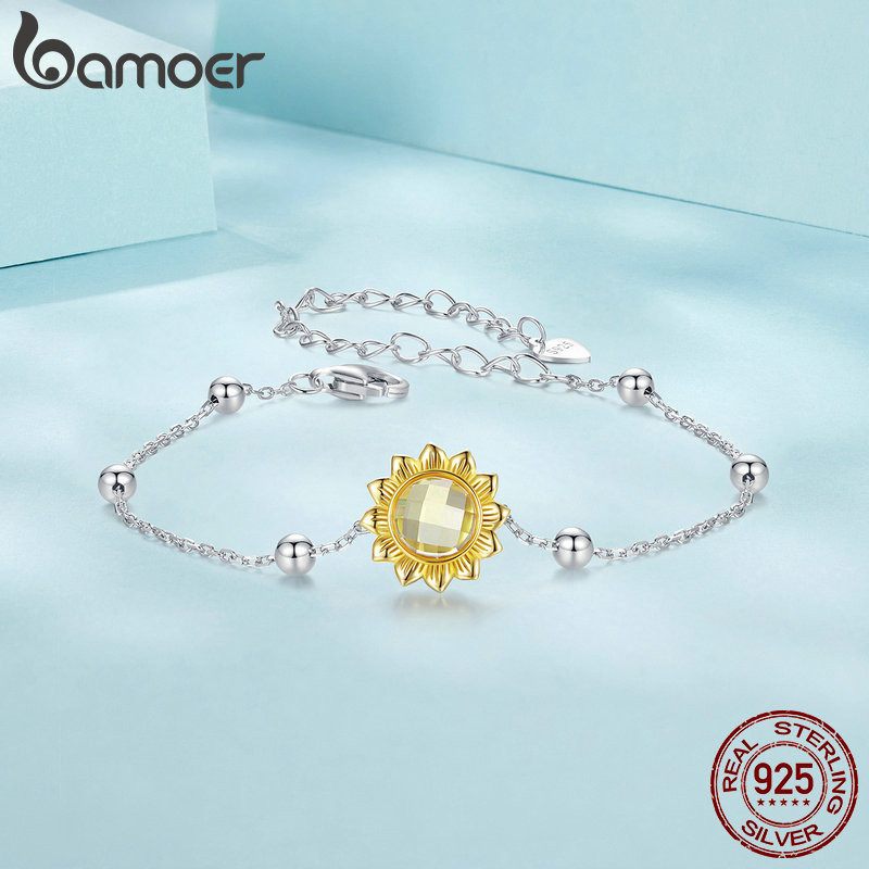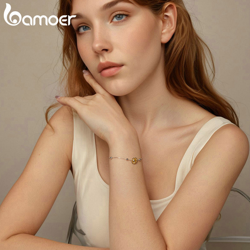 Pulseira Bamoer 925 Sterling Sliver Girassol Jóias Presentes Para Mulheres