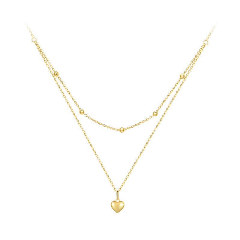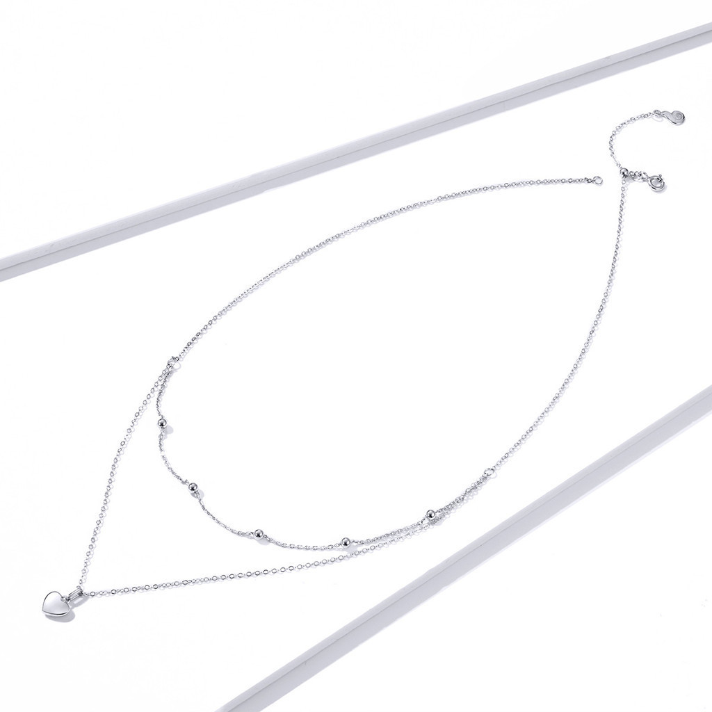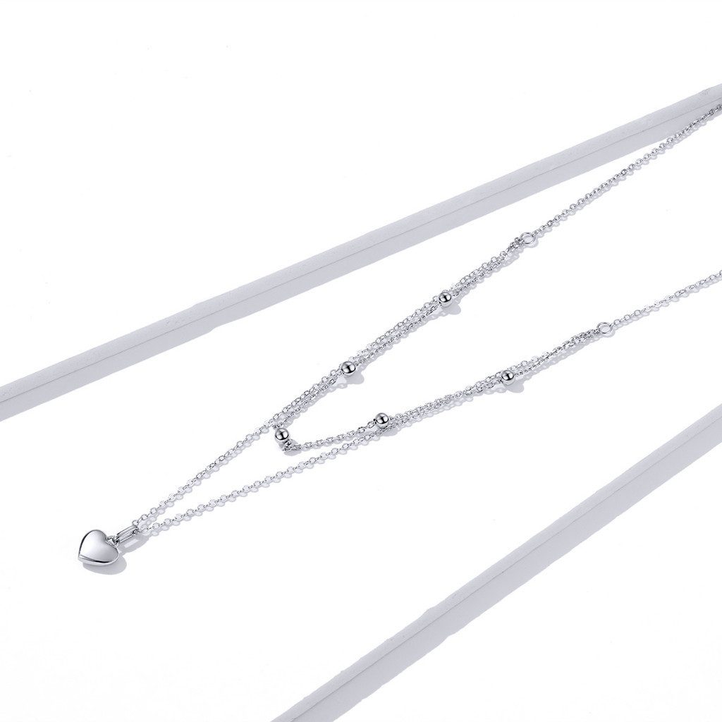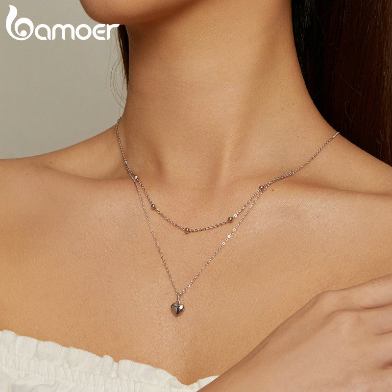 BAMOER 925 Colar Pingente Coração De Prata Sterling Para Mulheres Gargantilha De Ouro Dupla Camada Feminina Jóias Finas