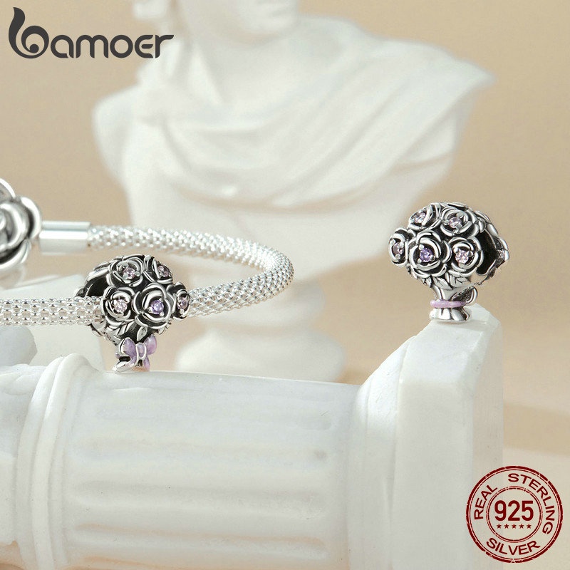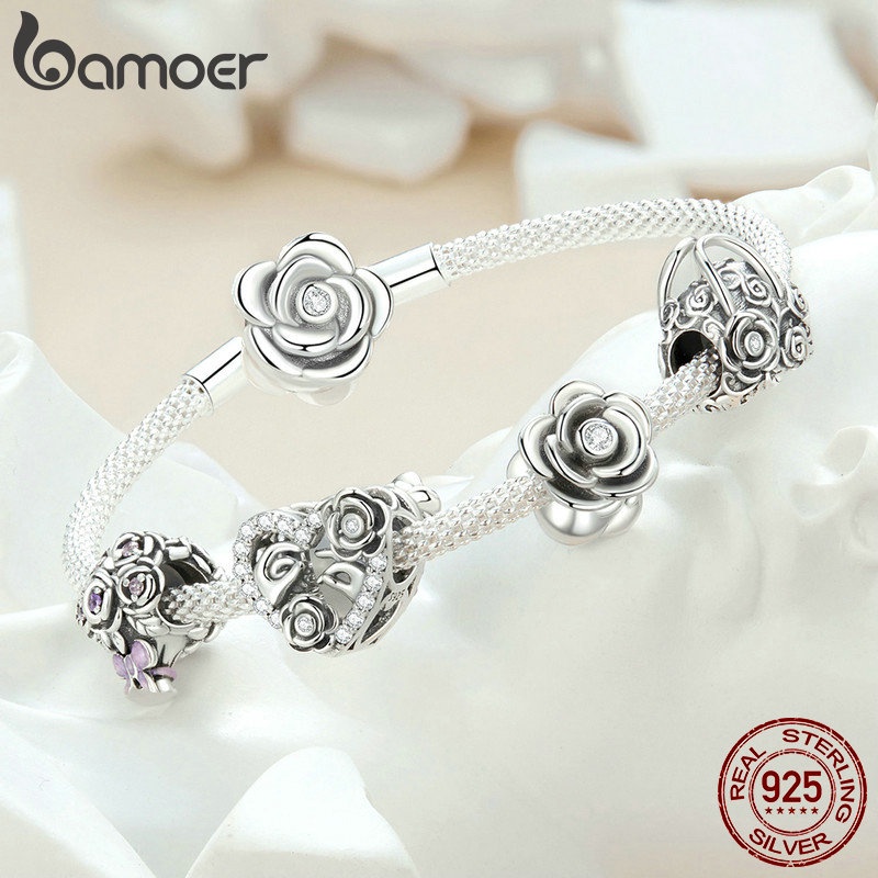 Bamoer 925 Prata Esterlina Encantos Pingentes Romântico Rosa Design Coleção Acessórios Para Pulseira DIY
