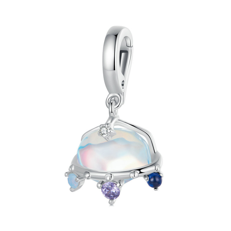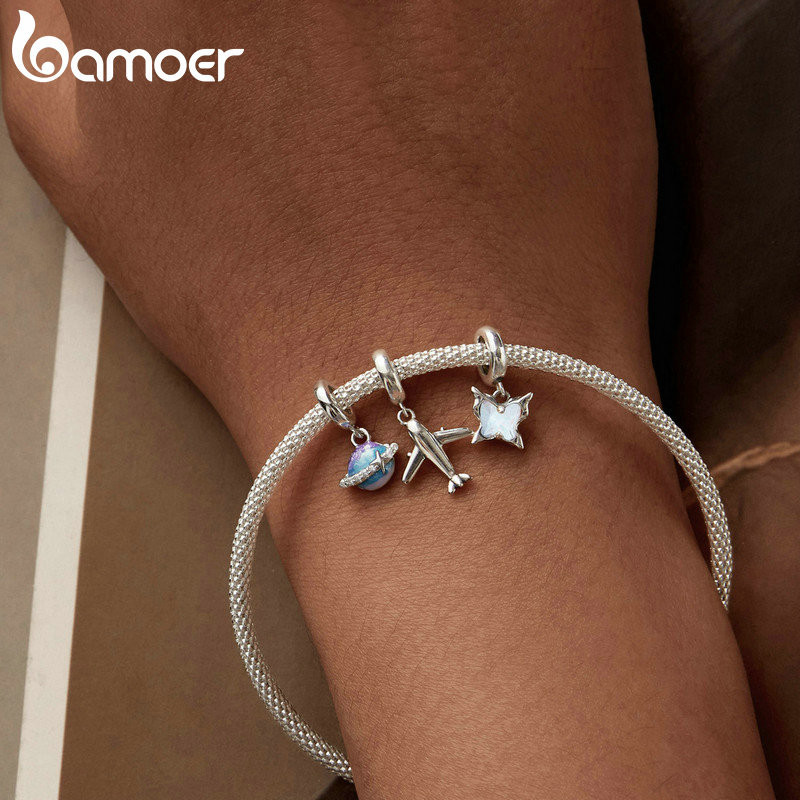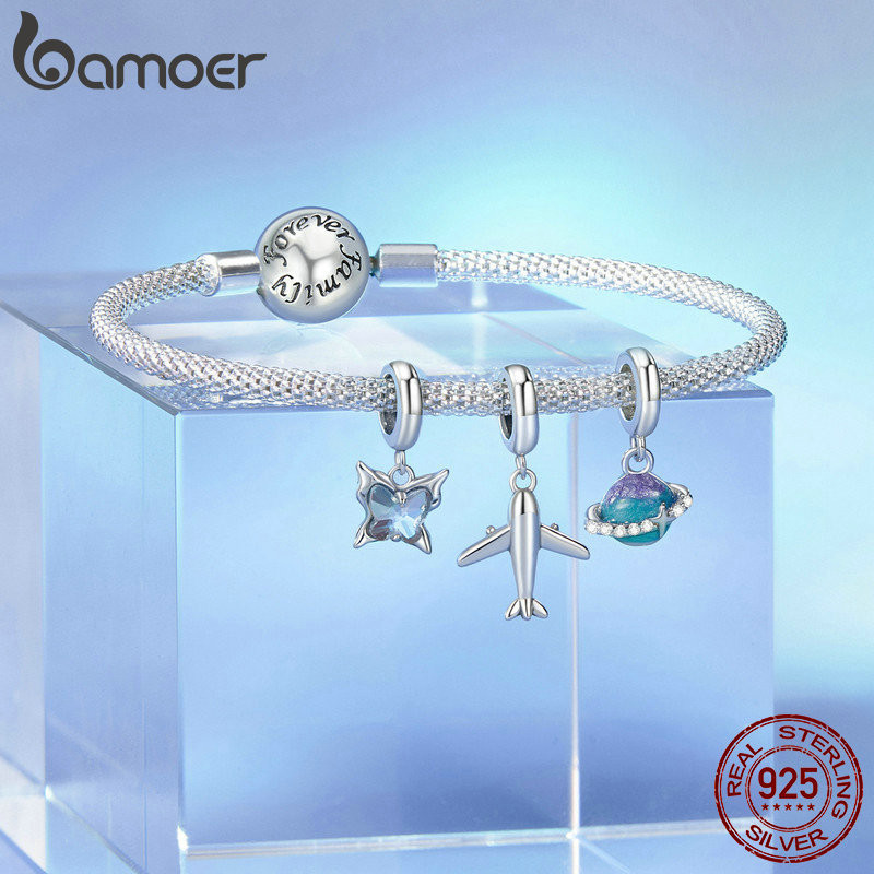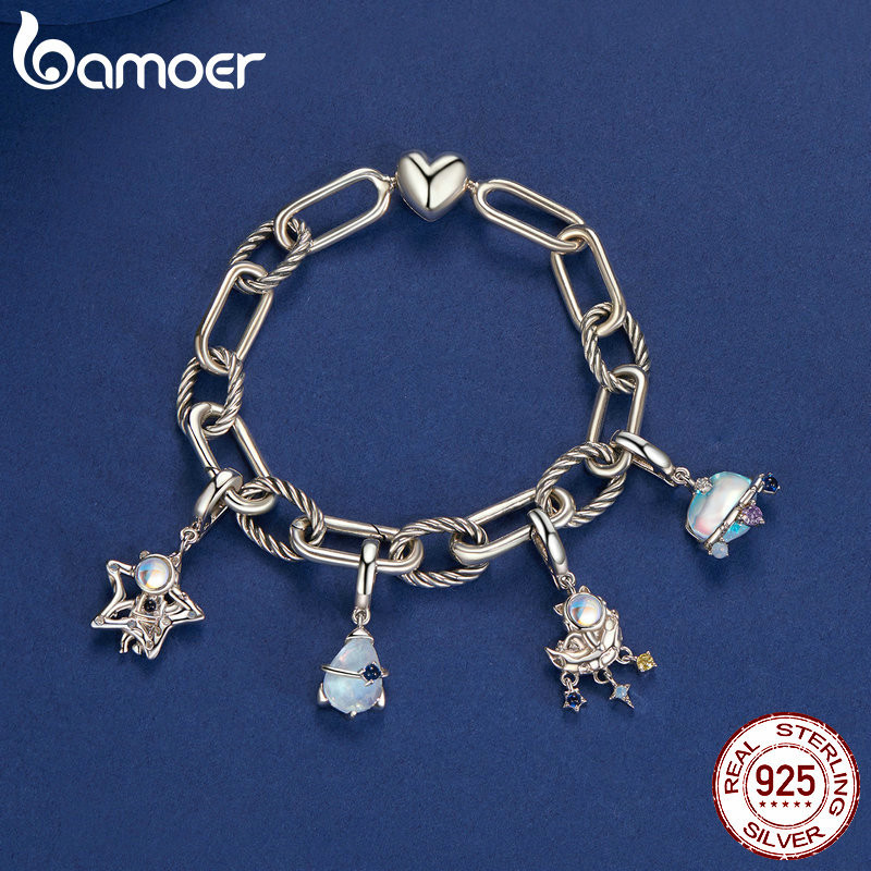 Bamoer 925 Sterling Silver Mini Airplane Planet Moon Astronauta Lunar Pingente De Charme Mulheres Fit Bracelet Colar Jóias Presente