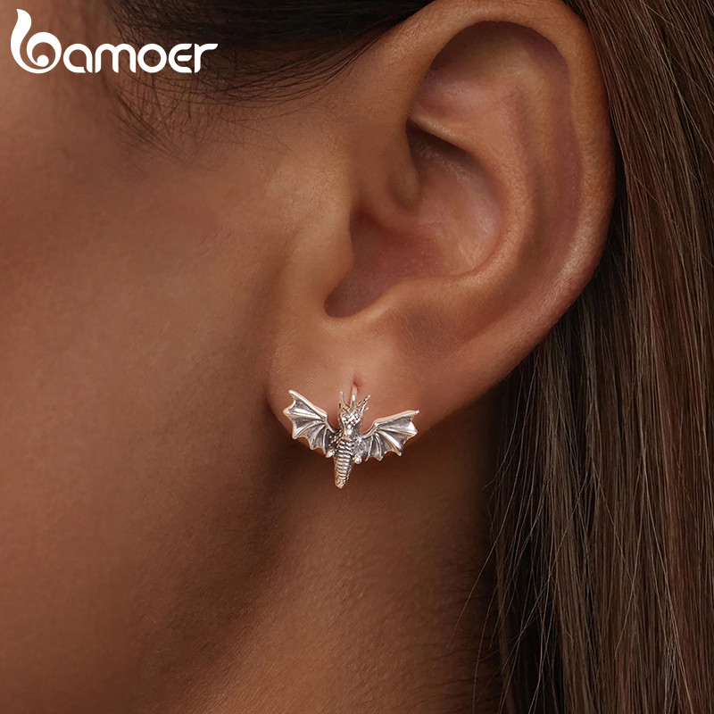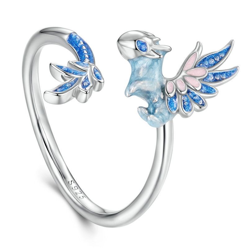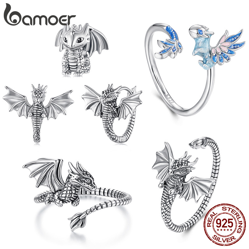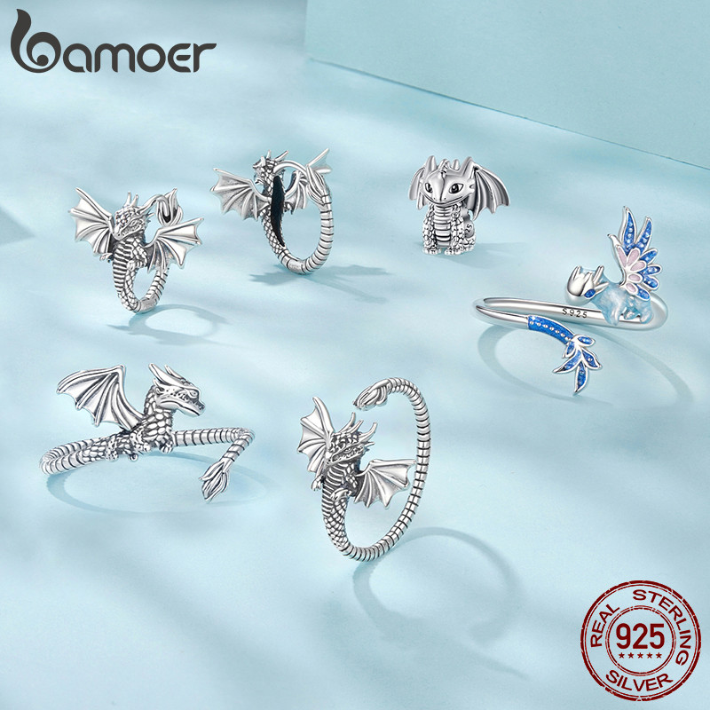 Bamoer 925 Prata Esterlina Anel Ajustável Dragão Voador Moda Jóias Presente Feminino