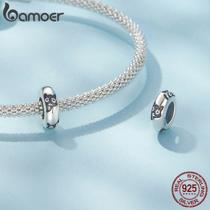 Bamoer 925 Prata Esterlina Gato Silicone Anel Espaçador Grânulo Pingente Acessório Série Pulseira