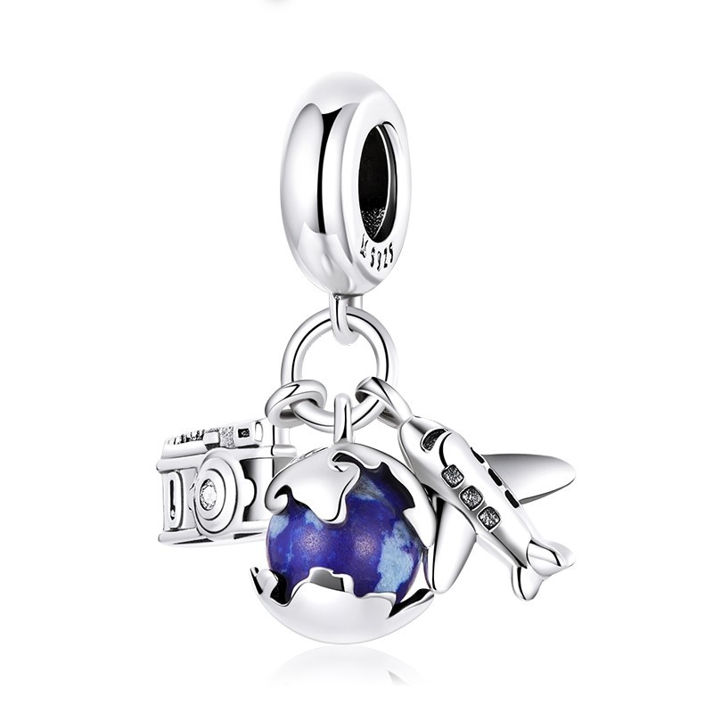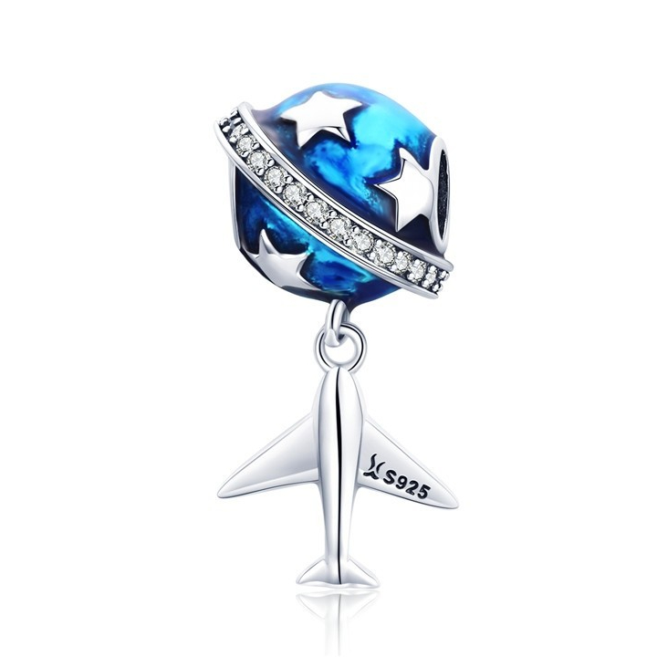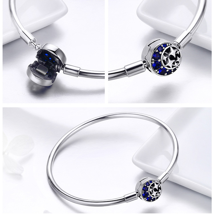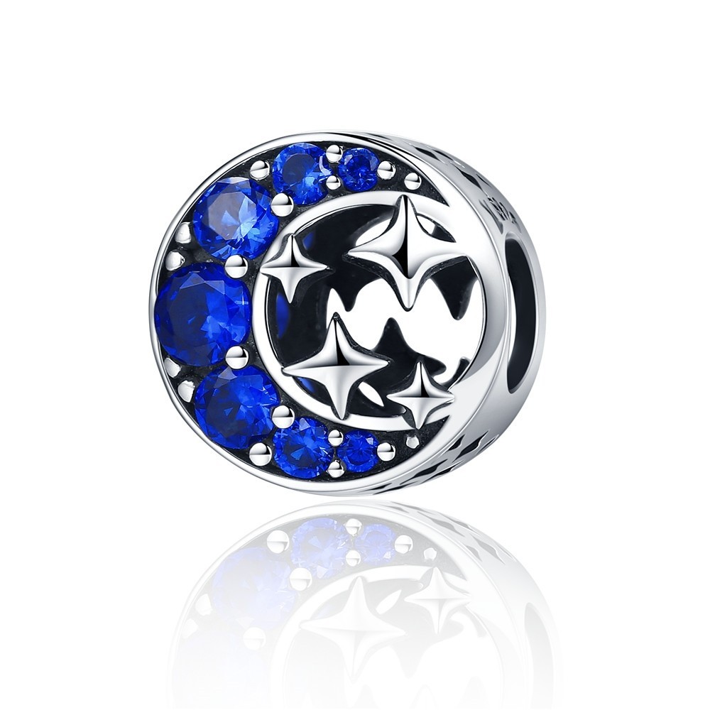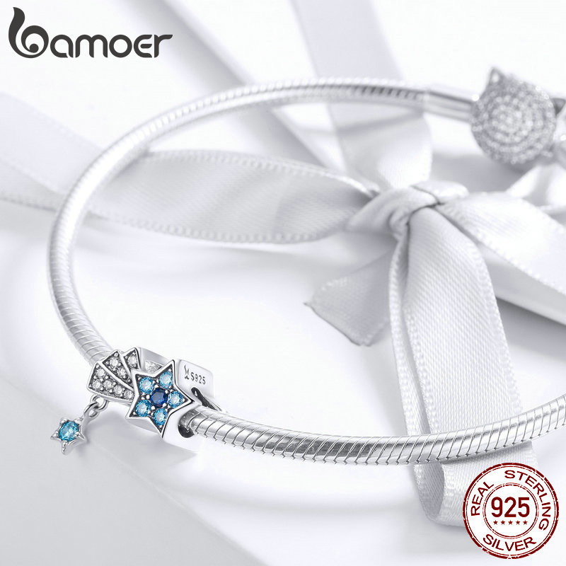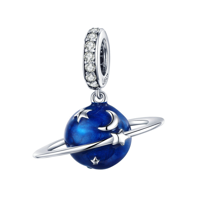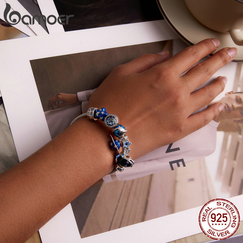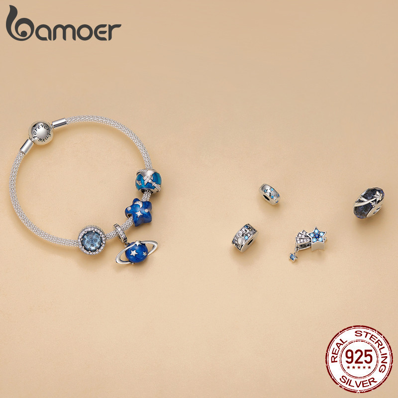 Bamoer 925 Sterling Silver Universe Series Star & Moon Beads Blue Planet Pendant Charmes Para Mulheres Pulseira De Bricolage Jóias Finas Presente