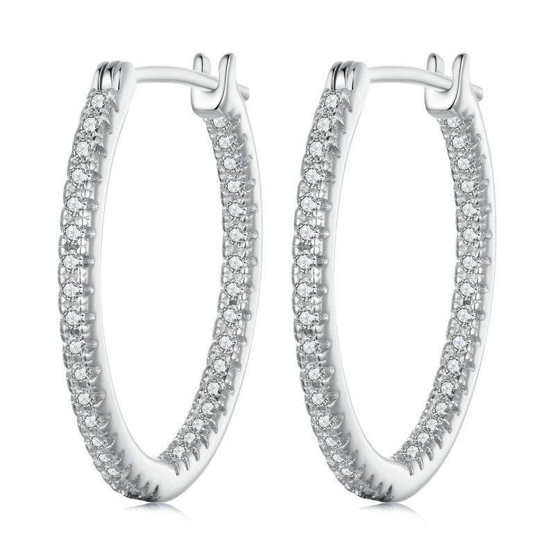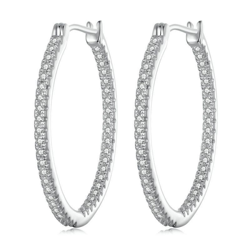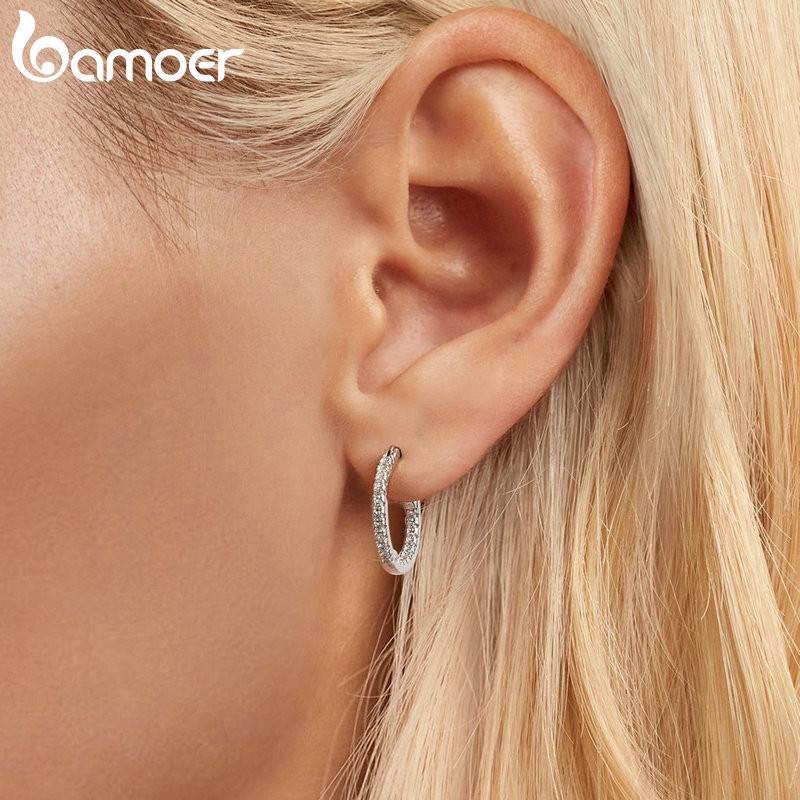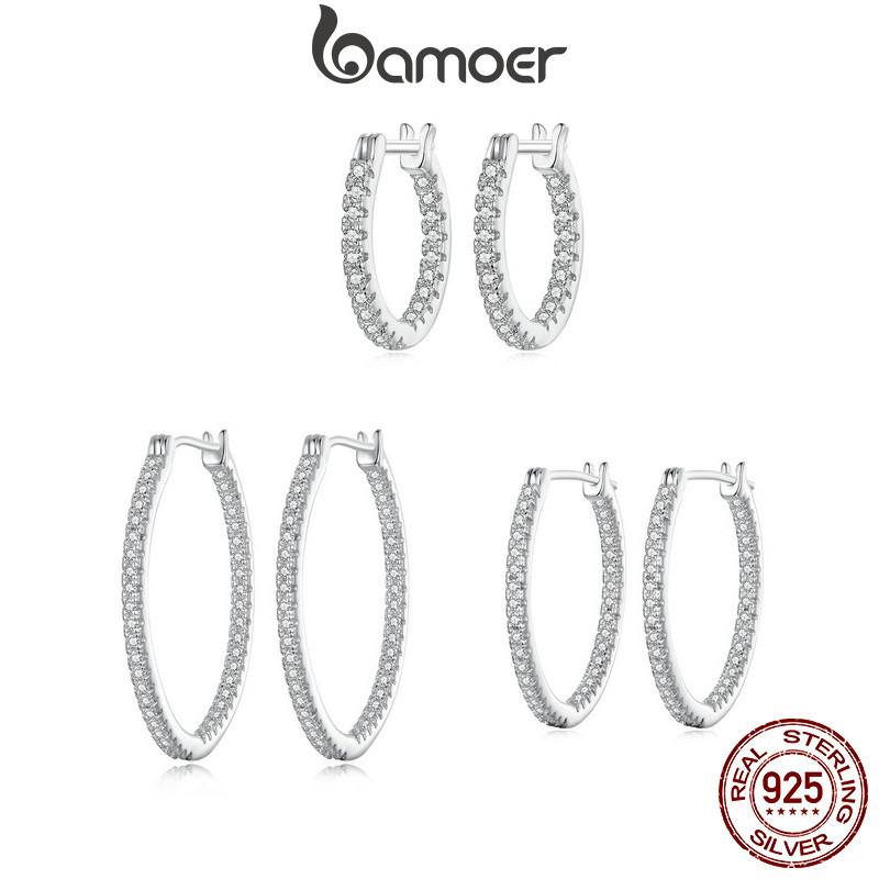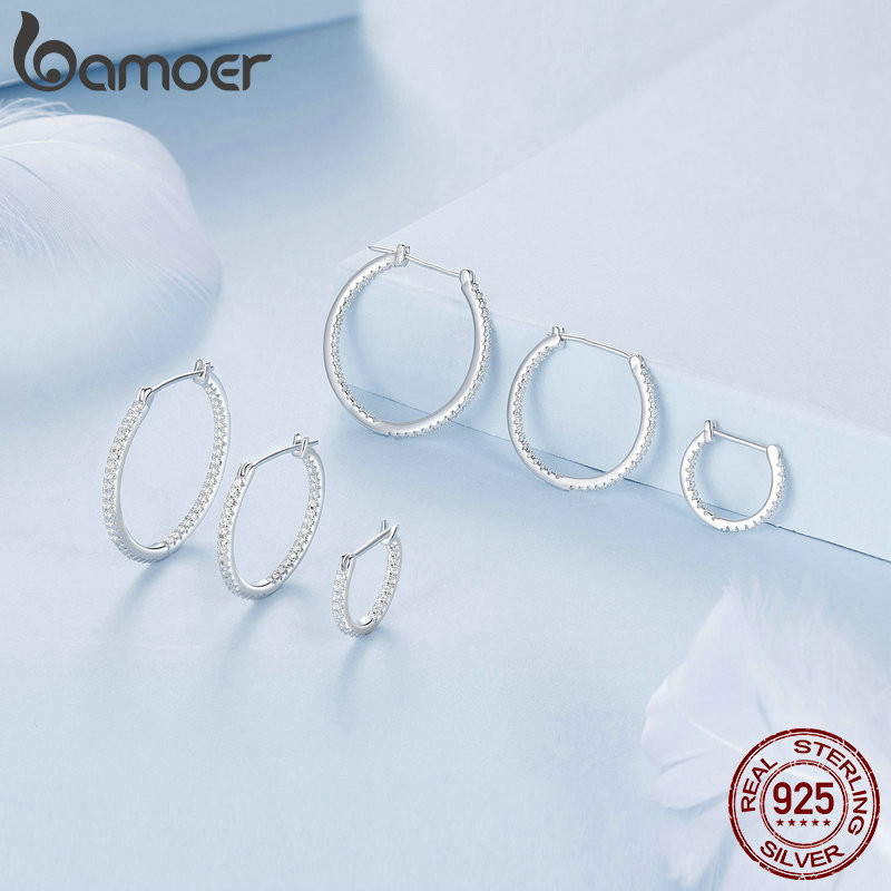 Brincos Bamoer 925 Sterling Sliver Hoop Jóias Brilhantes Para Mulheres