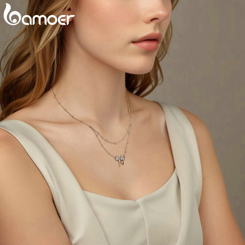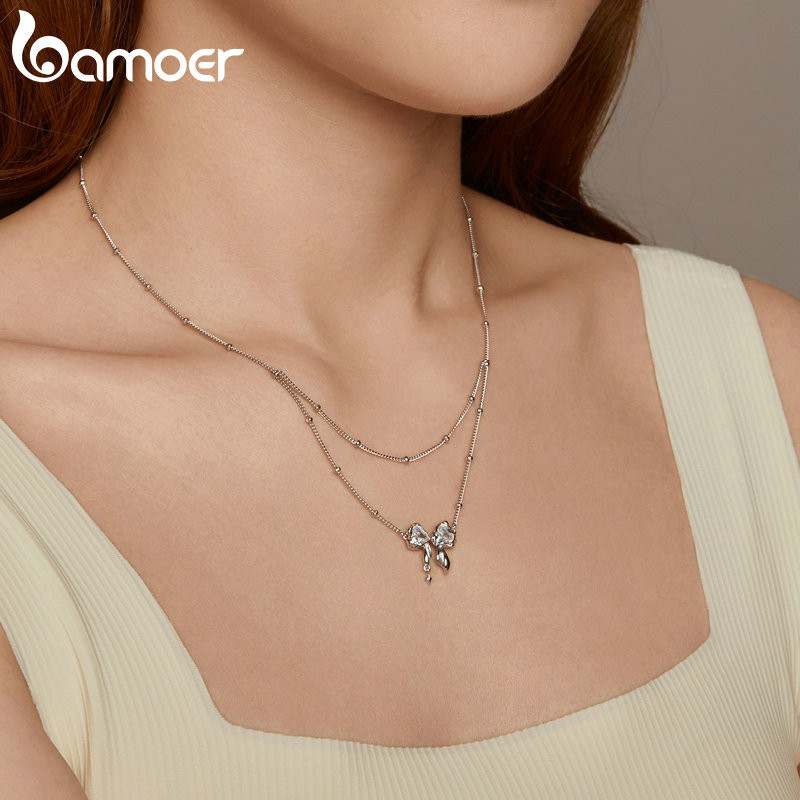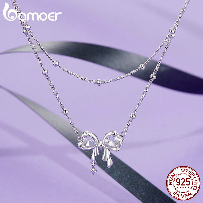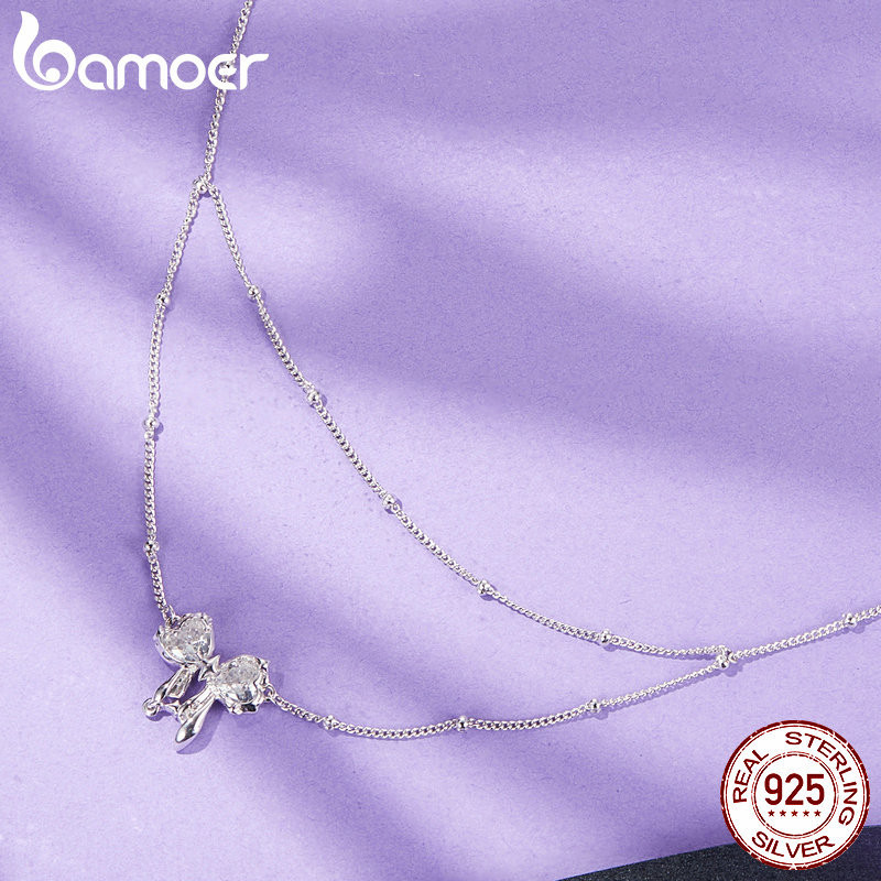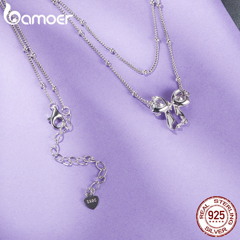 Colar De Fita Bamoer 925 Sterling Dazzling Bowknot Jóias Presentes Para Mulheres