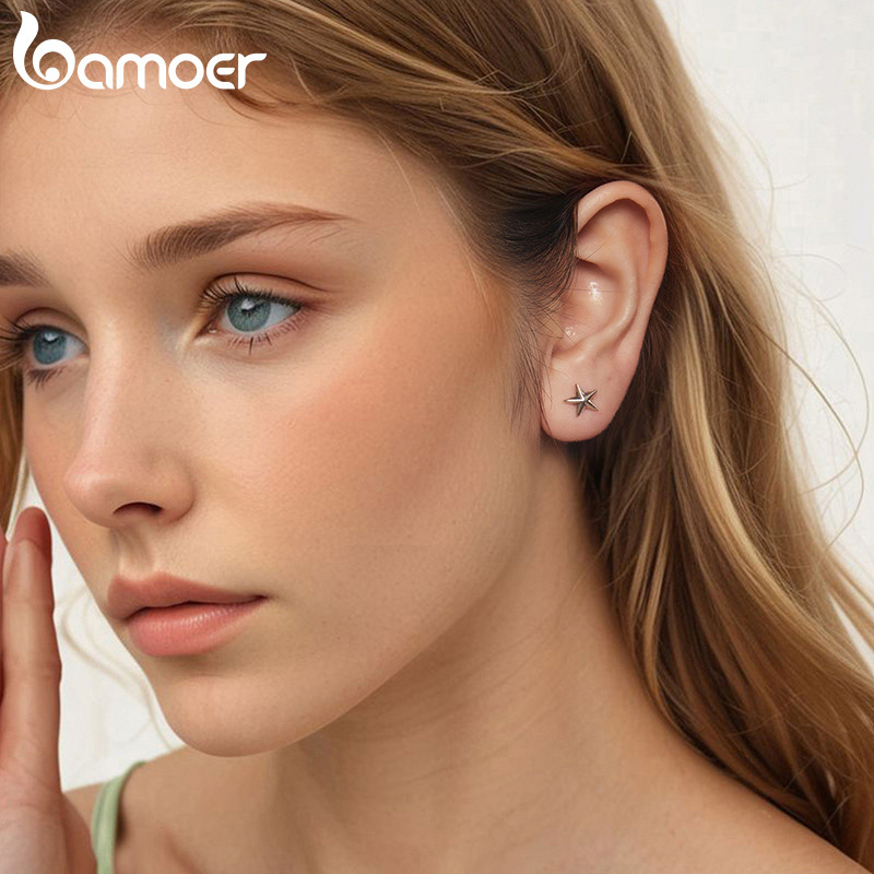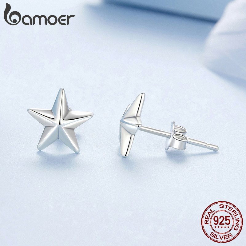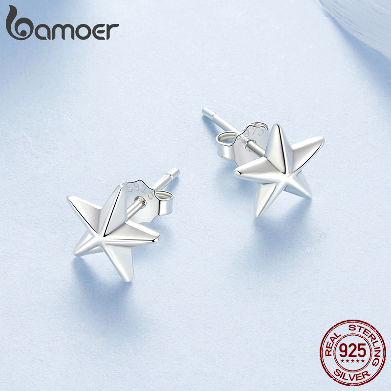 Bamoer 925 Sterling Sliver Brincos Estrela Design Joias Presentes Para Mulheres BSE1122