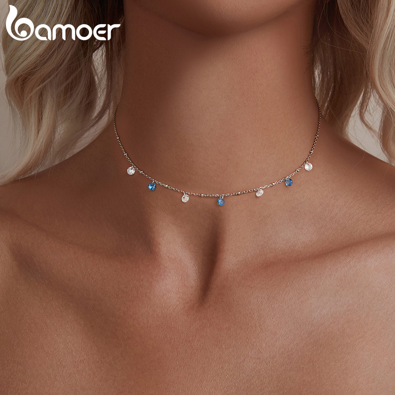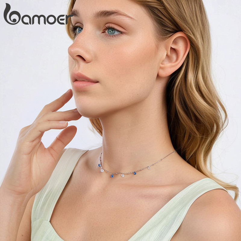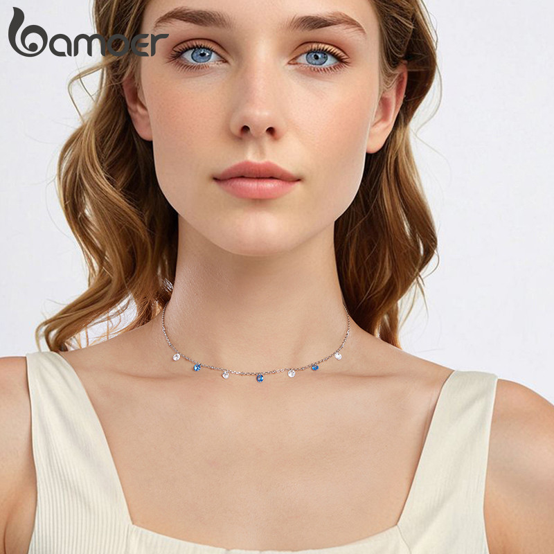 Colar De Prata Esterlina 925 Bamoer , Joias Com Estrela Brilhante , Presentes Para Mulheres