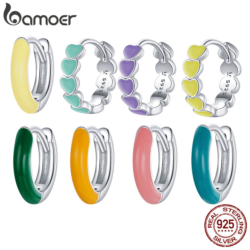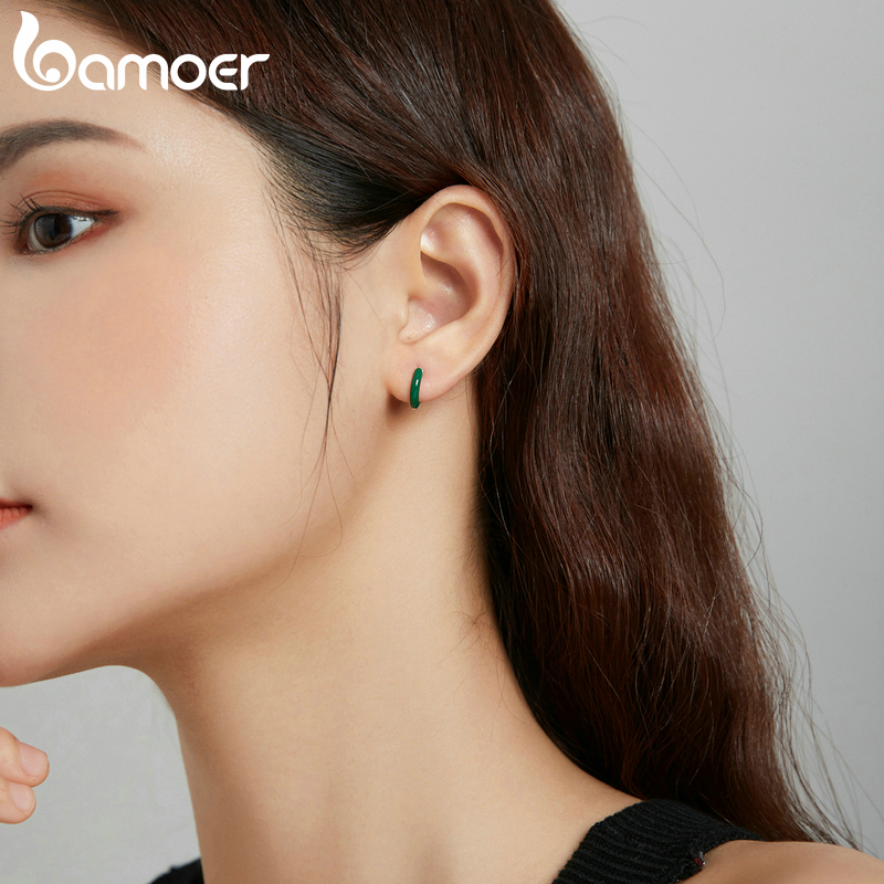 (1 Peça) Brincos Bamoer 925 Sterling Silver Women Textura Simples Jewerly BSE488