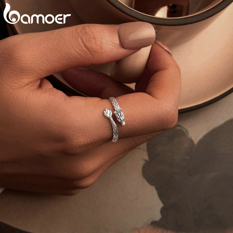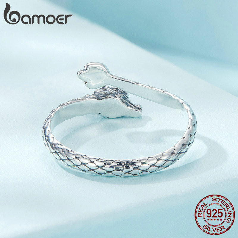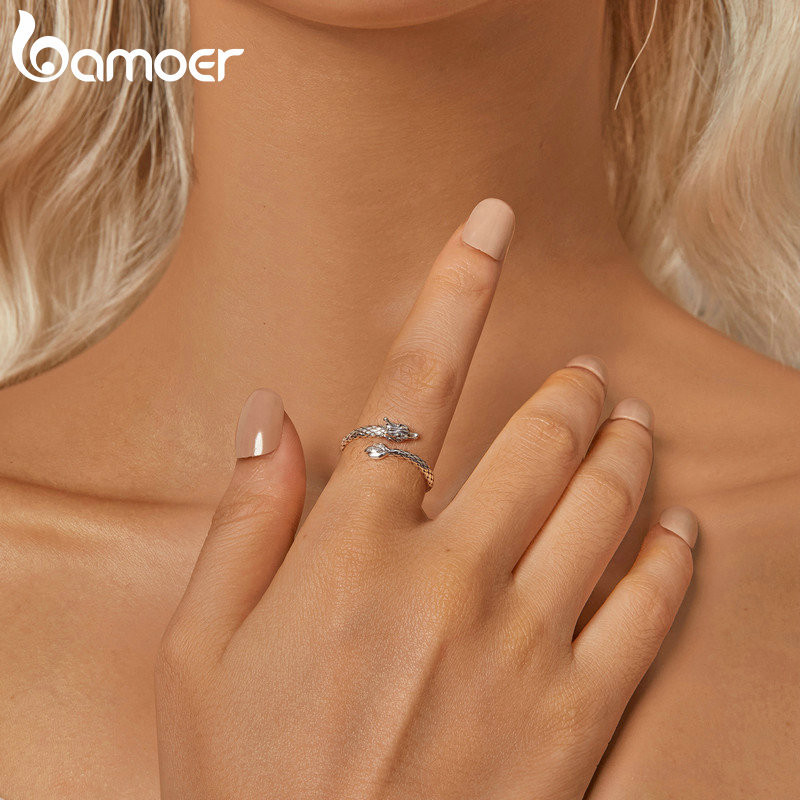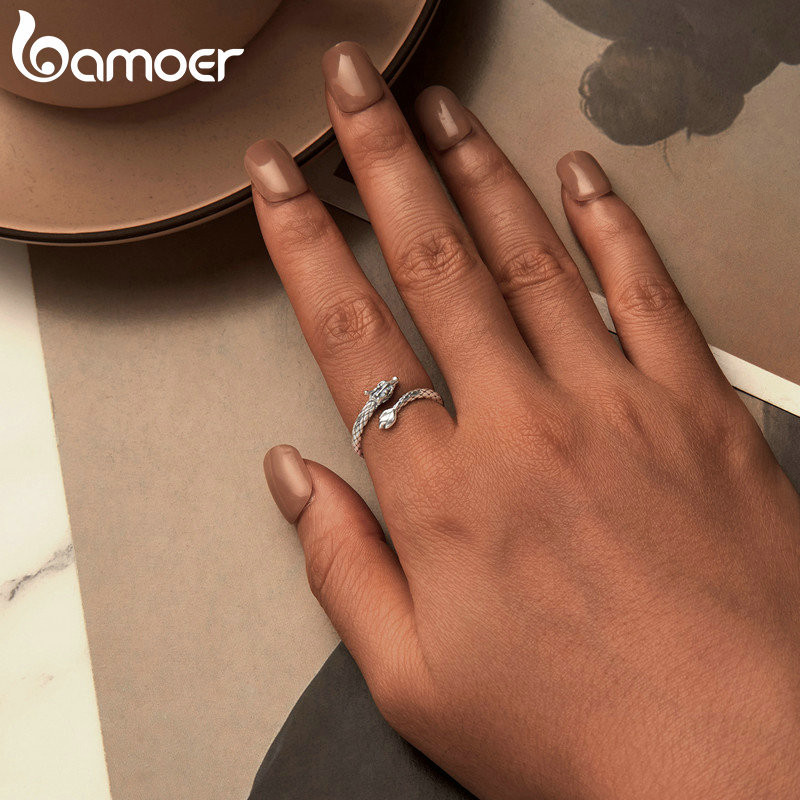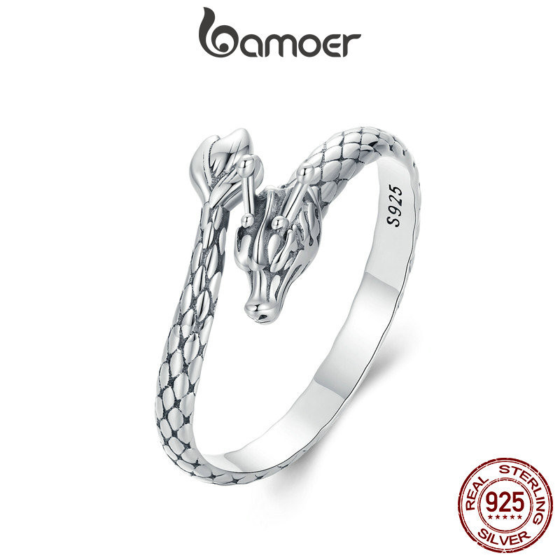 Bamoer 925 Sterling Sliver Ring Dragão Em Espiral Desenho De Jóias De Moda Requintada Para Mulheres SCR1018-E