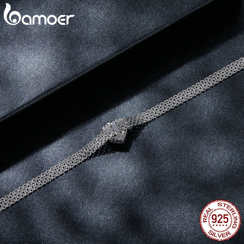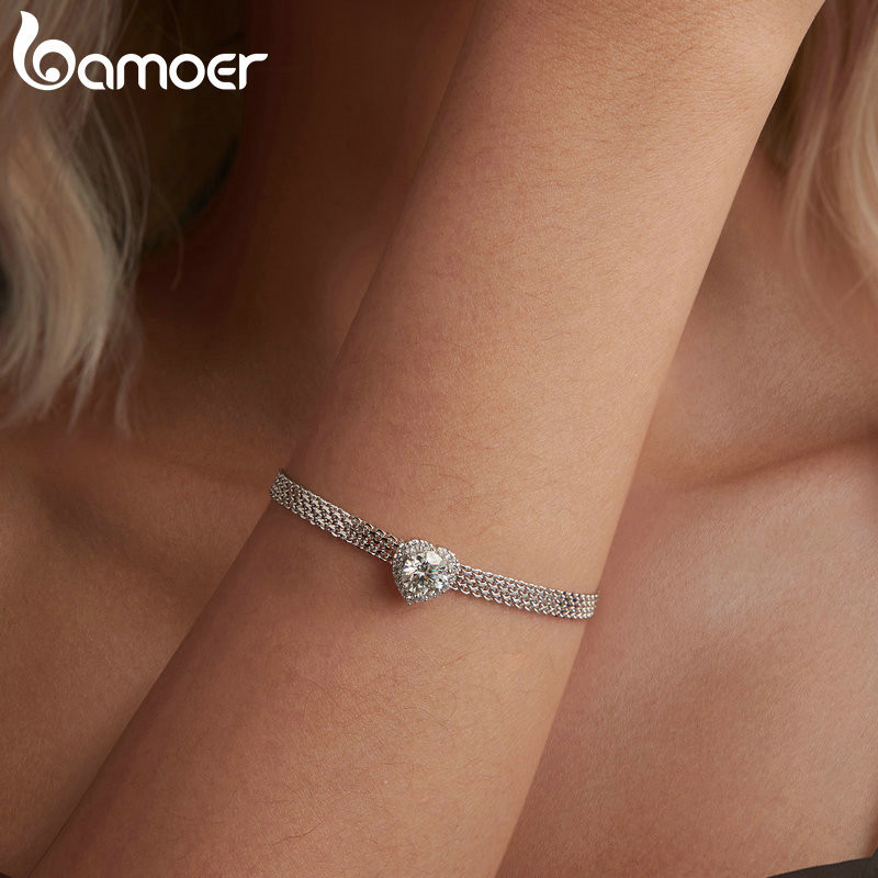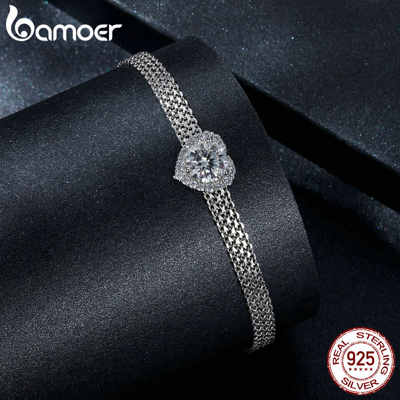 Bamoer 925 Sterling Sliver Bracelet Moissanite Pulseira Jóias Tecidas Com Coração Para Mulheres