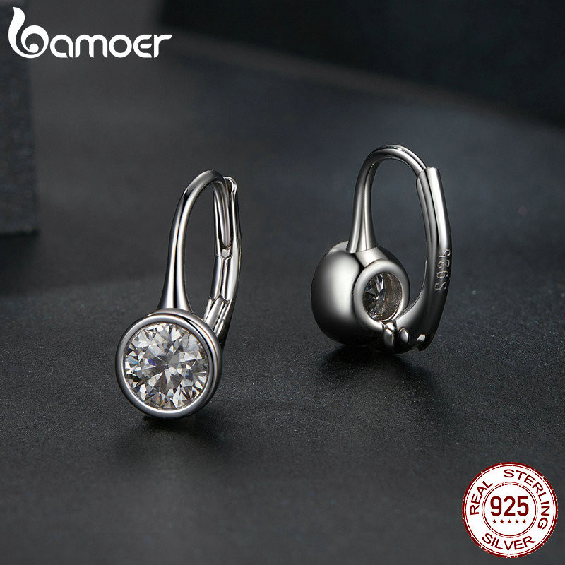Brincos De Fita Bamoer 925 Sterling Hoop Moissanita Cintilante Jóias Para Mulheres
