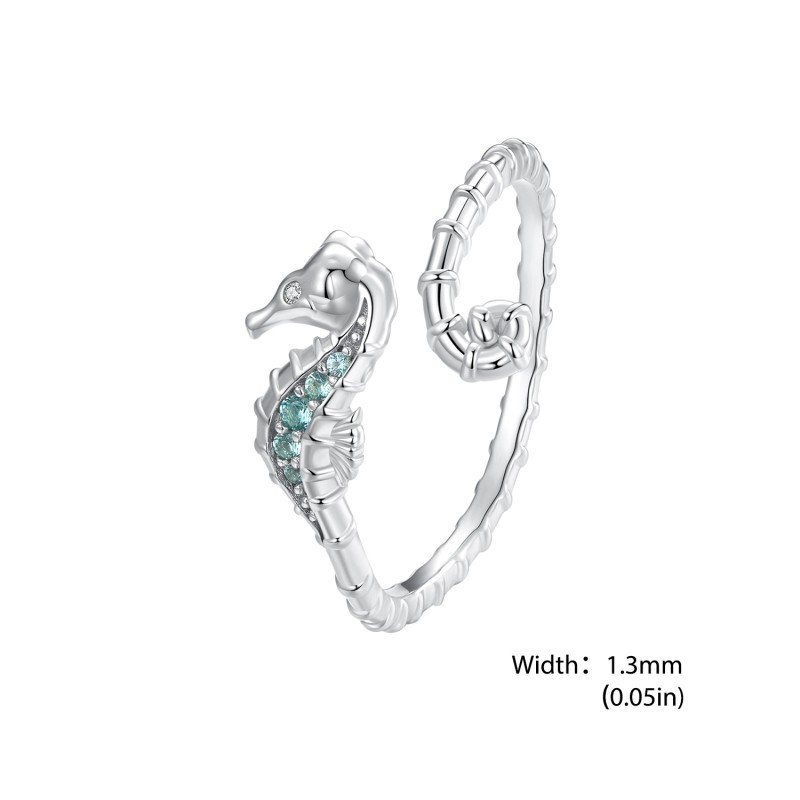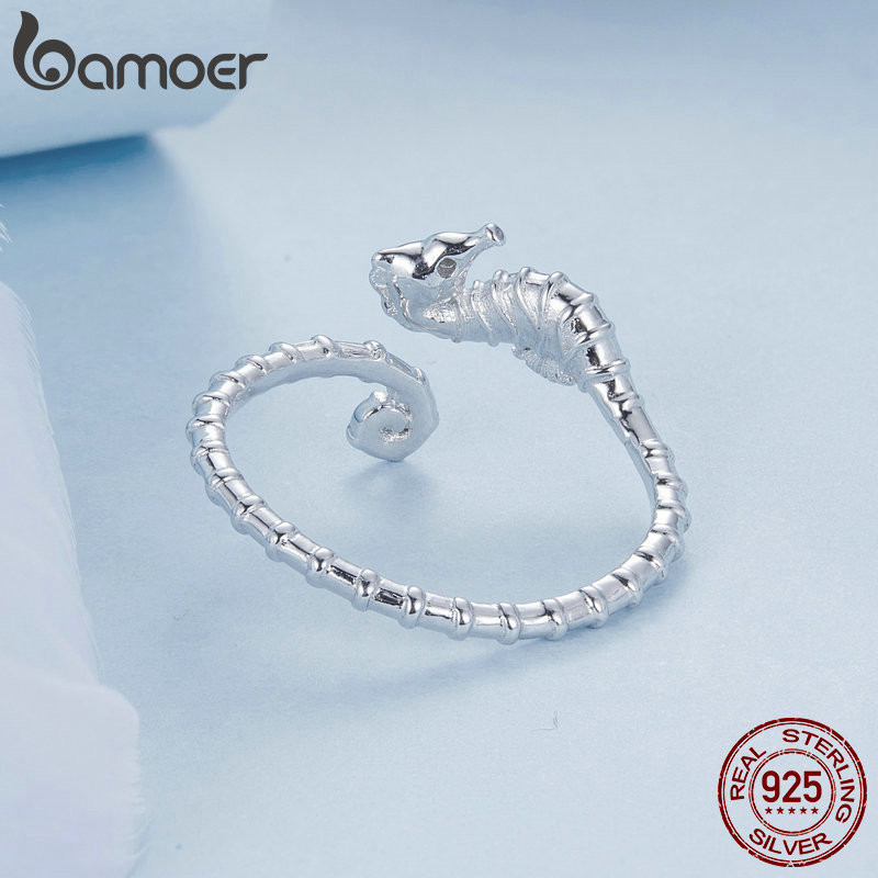 Bamoer 925 Sterling Sliver Fita Aberta Anel Cavalo Marinho Design Jóias De Moda Presentes Para Mulheres