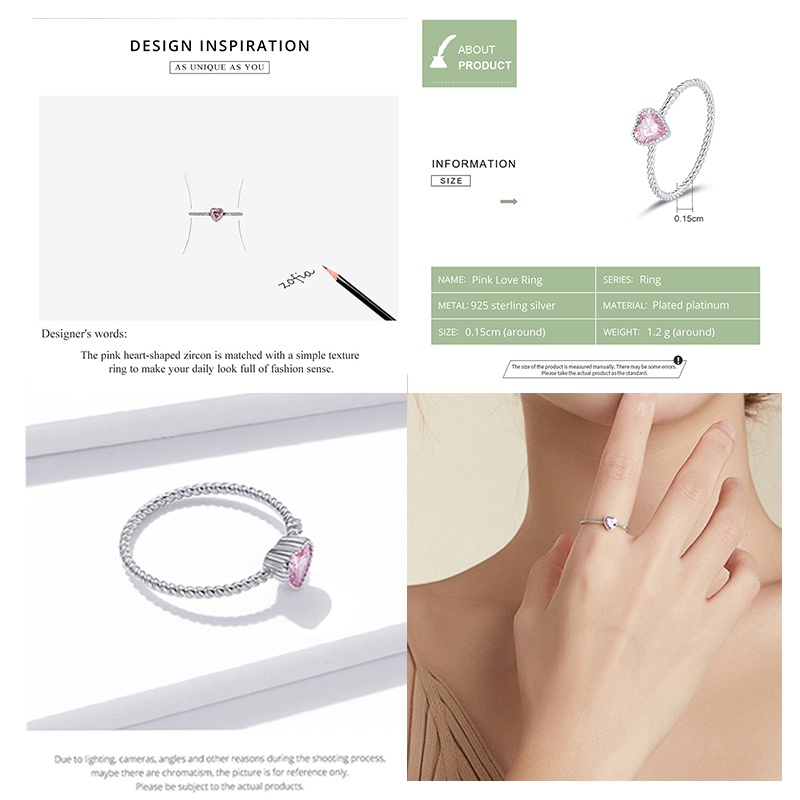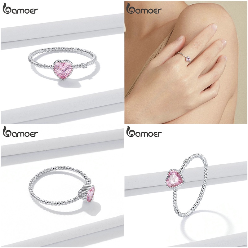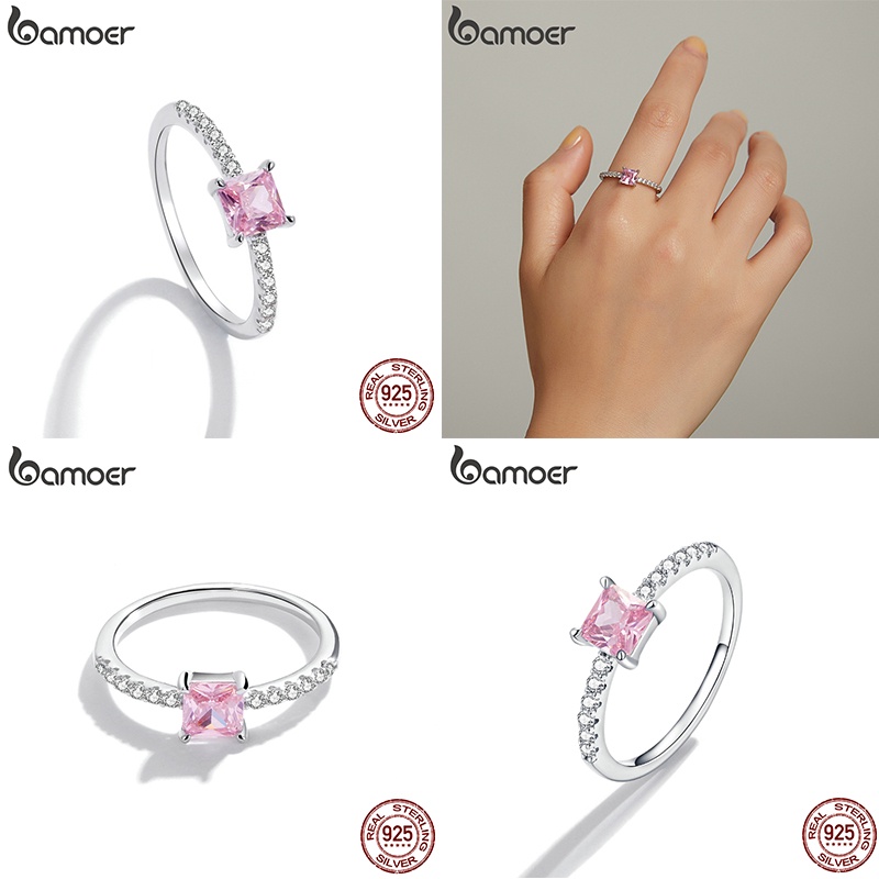Bamoer 925 Silver Sterling Pink Zircon Ring Jóias De Moda Em Zircônio Rosa Para Presentes De Aniversário Feminino
