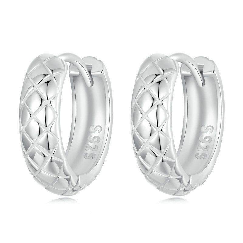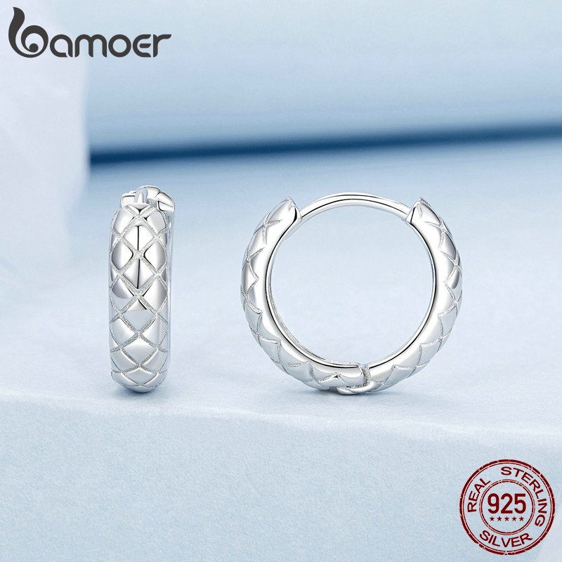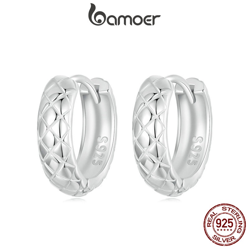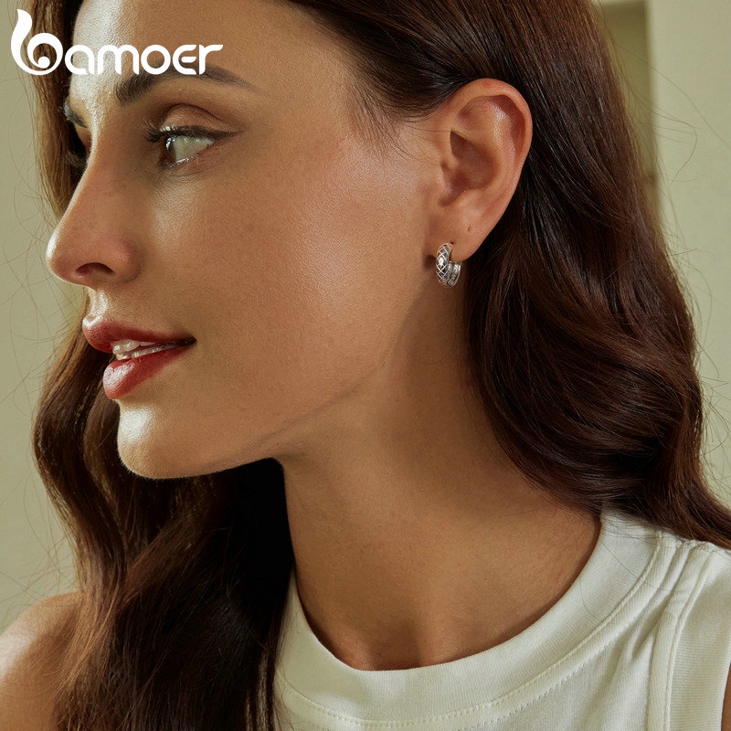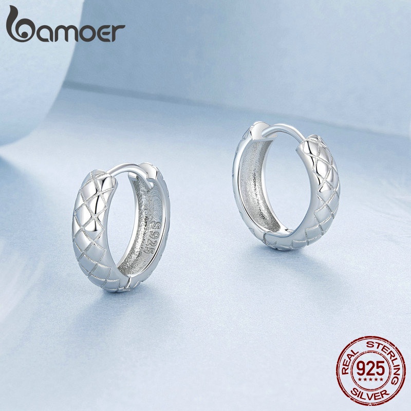 Brincos Bamoer 925 Sterling Sliver Hoop Diamante Design Textura Jóias Presentes Para Mulheres