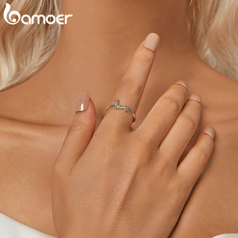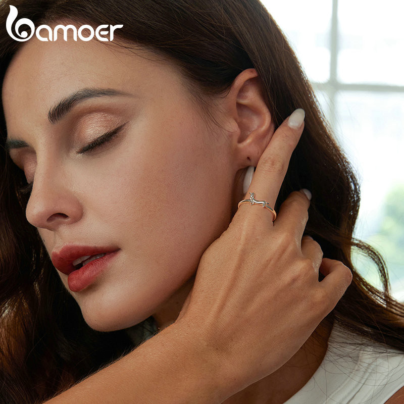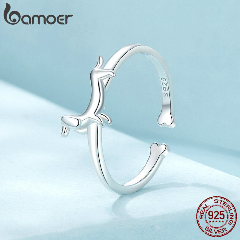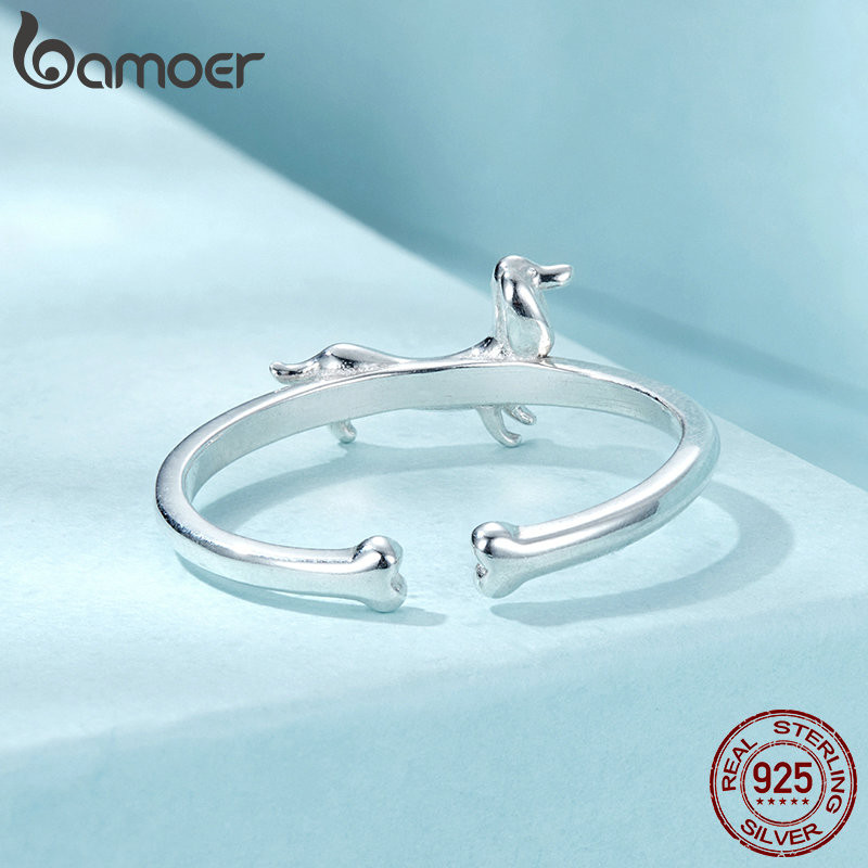 Bamoer 925 Sterling Sliver Ring Dachshund Dog Design Jóias De Moda Requintada Presentes Para Mulheres