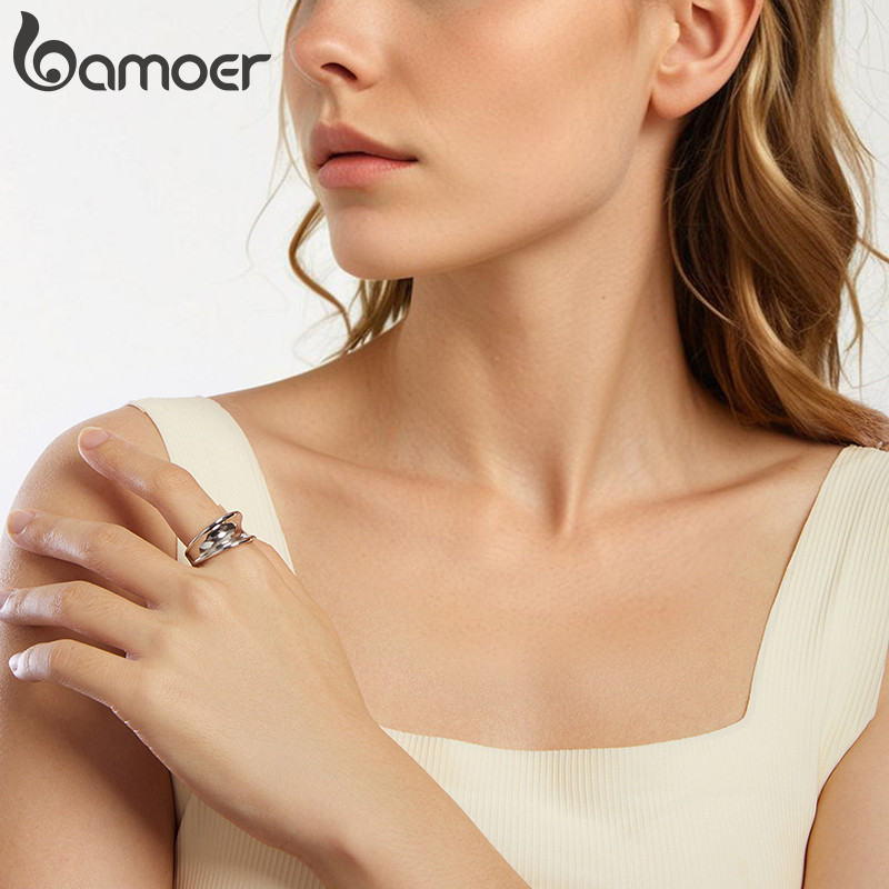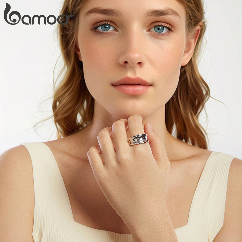 Anel Aberto Bamoer Polido Brilhante Requintado Joias Da Moda Presentes Para Mulheres