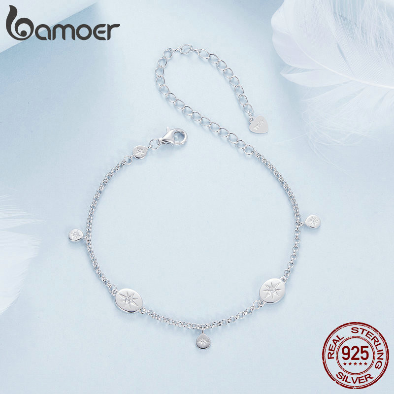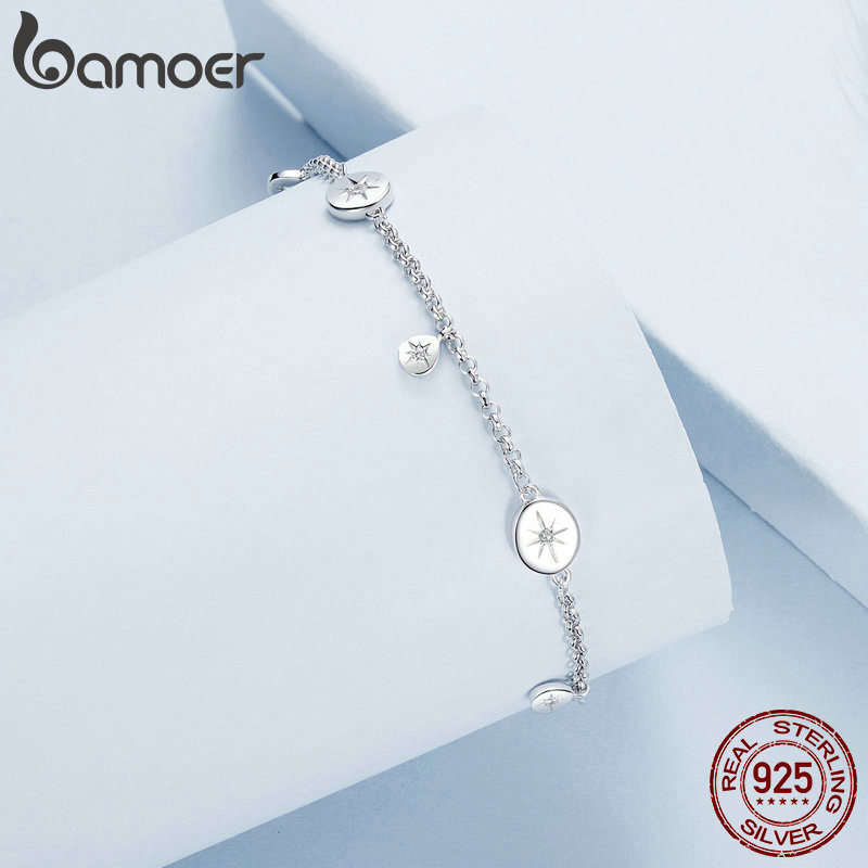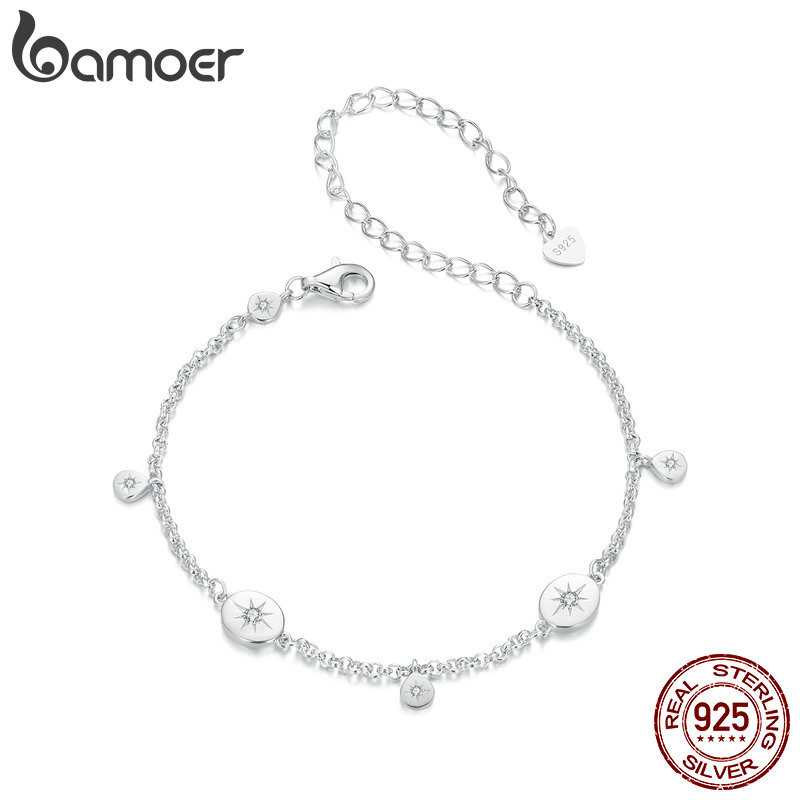 Pulseira Bamoer 925 Sterling Sliver Star Fringe Jóias Presentes Para Mulheres