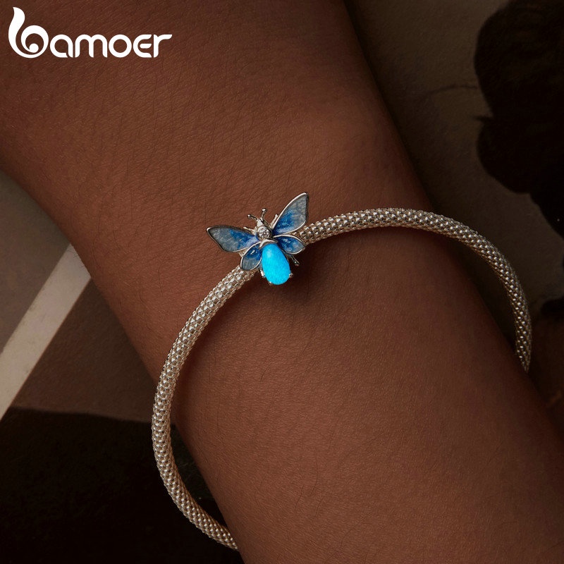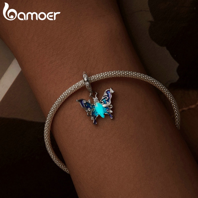 Bamoer Charme Prata 925 Borboleta Abelha Joaninha Fita Luminosa