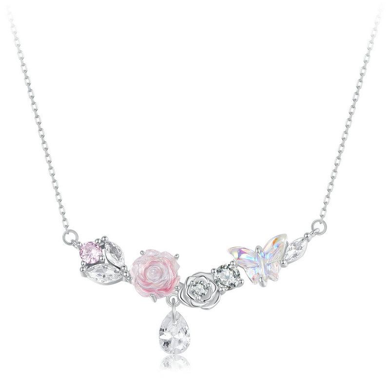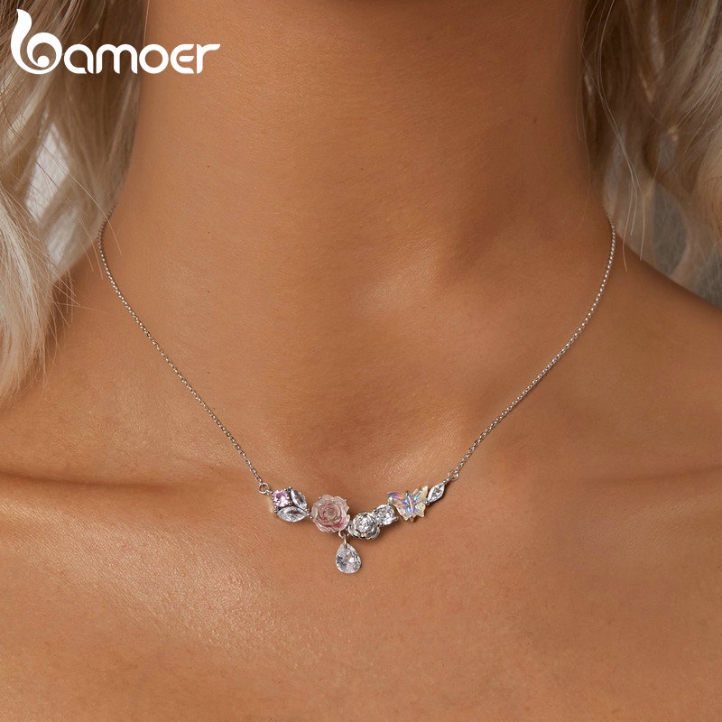 Colar De Fita Bamoer 925 Sterling Fantasia Borboleta Flor De Presentes Para Mulheres SCN521