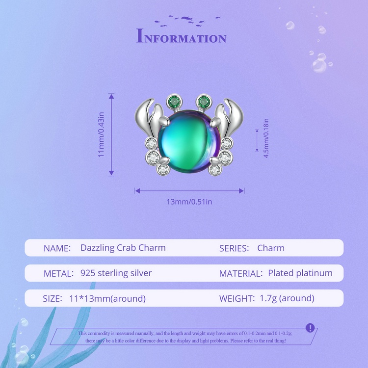 Bamoer 925 Sterling Sliver Charme De Caranguejo Deslumbrante Pingente De Design De Vidro Colorido BSC848