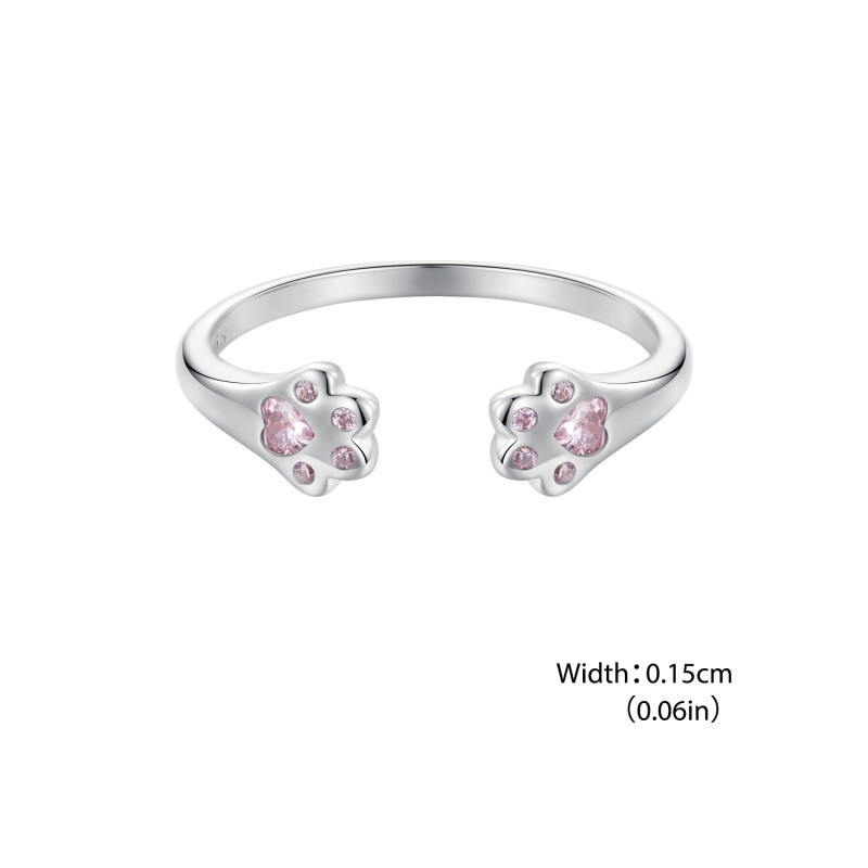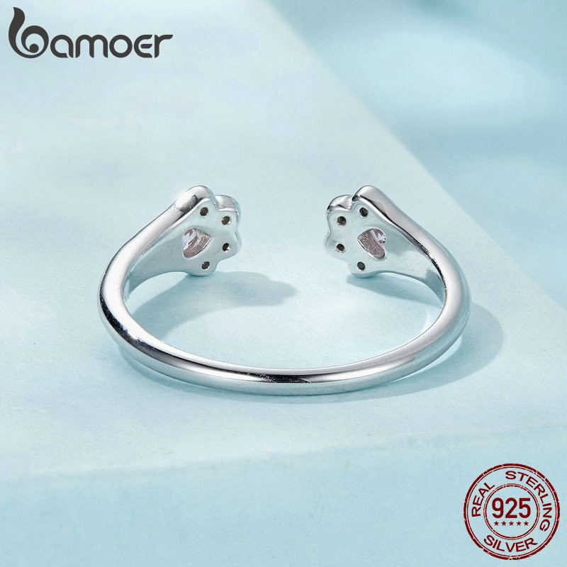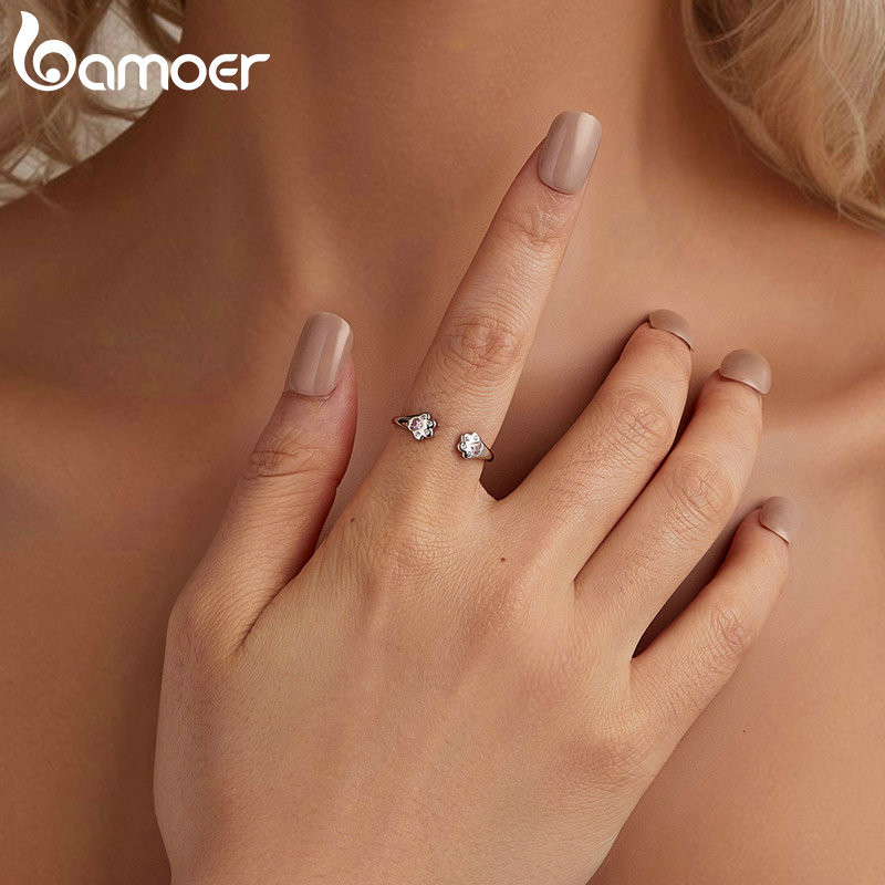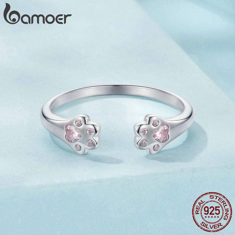 Bamoer 925 Sterling Sliver Ring Anel De Fita Ajustável Pata Cor-De-Rosa Presentes De Moda Para Mulheres