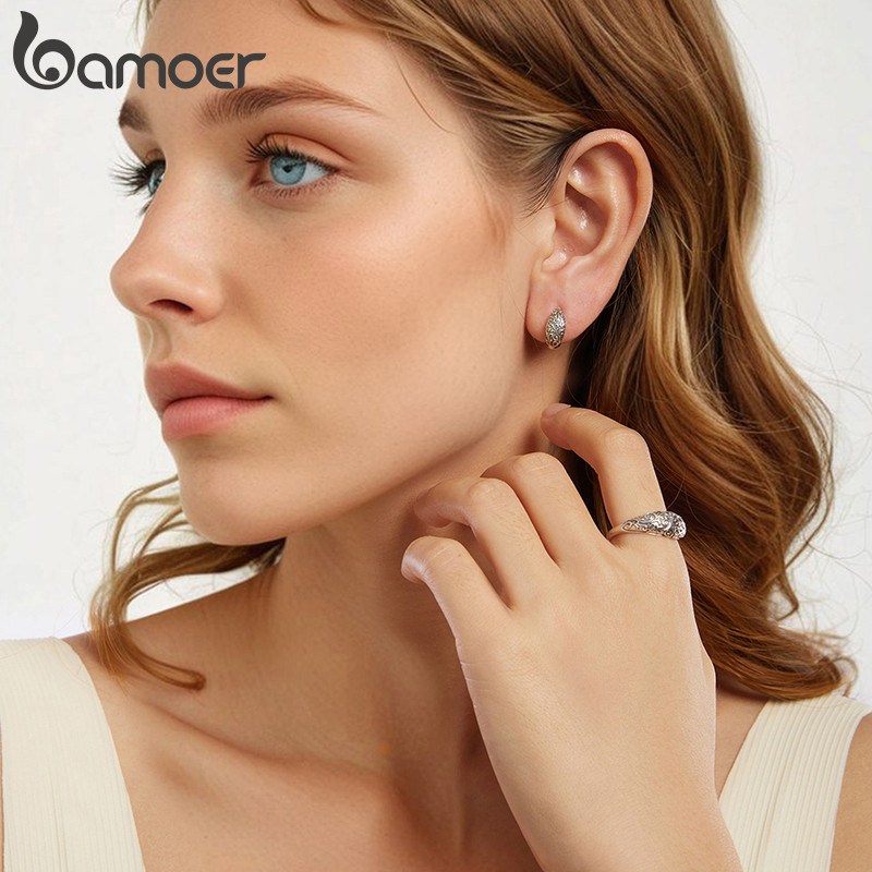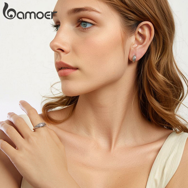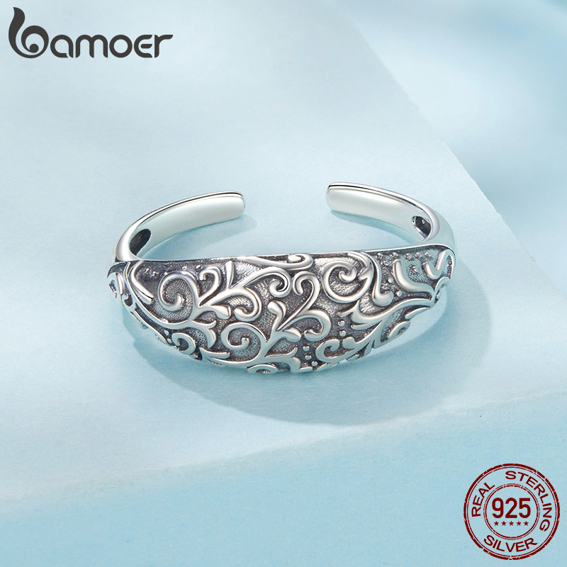 Bamoer 925 Prata Esterlina Anel Ajustável Padrão Joias Presentes Para Mulheres