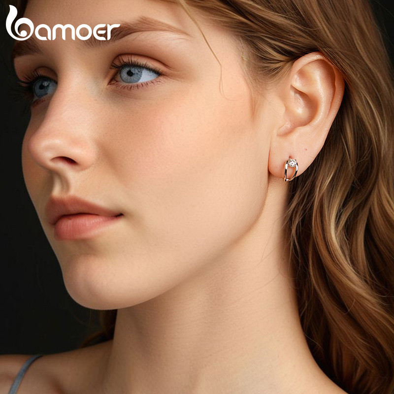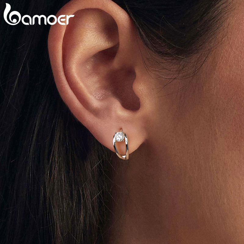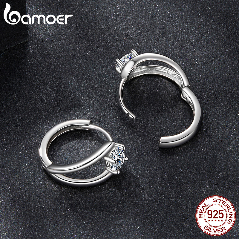 Brincos De Argola De Prata Esterlina 925 Bamoer 0.3CT Joias De Moissanite Presentes Para Mulheres