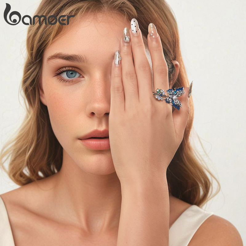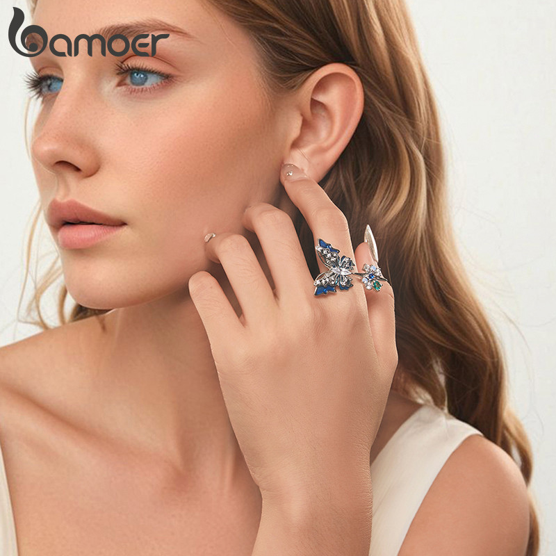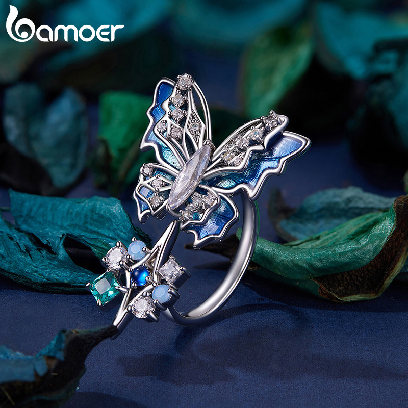 Anel Bamoer Borboleta Gelo E Neve Estilo Coreano Banhado A Cobre Gifs De Ouro Branco Para Mulheres