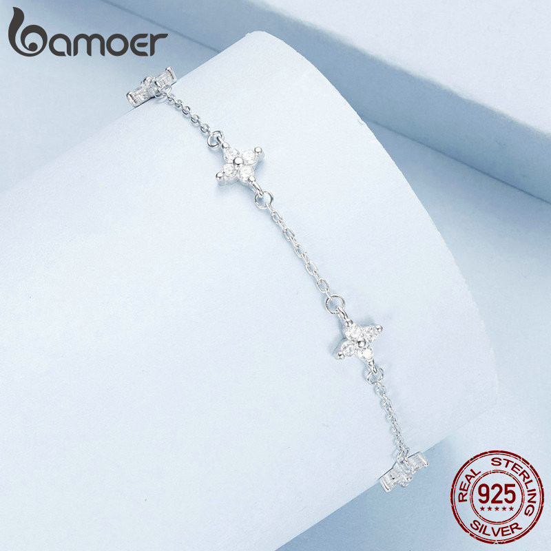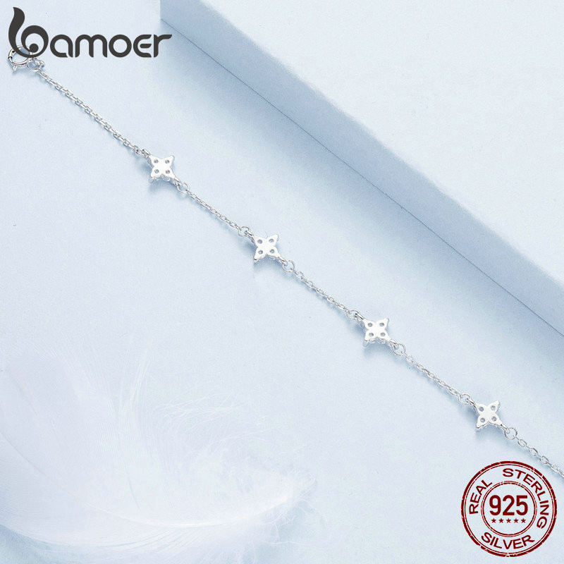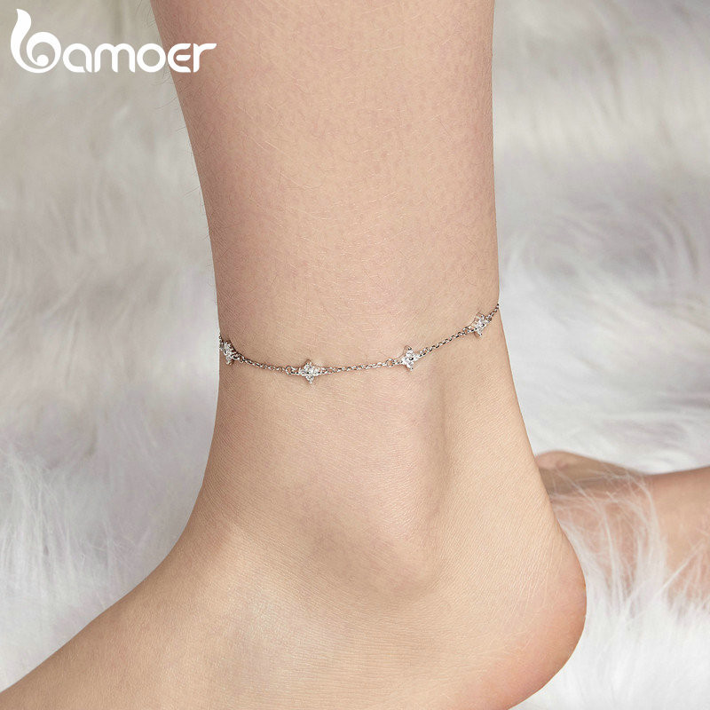 Bamoer 925 Sterling Sliver Anklet Tornozeleira Quatro Folhas Jóias De Trevo Para Mulheres