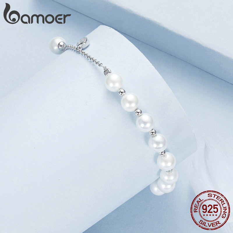 Pulseira Bamoer 925 Sterling Sliver Pearl Tassel Jóias Presentes Para Mulheres