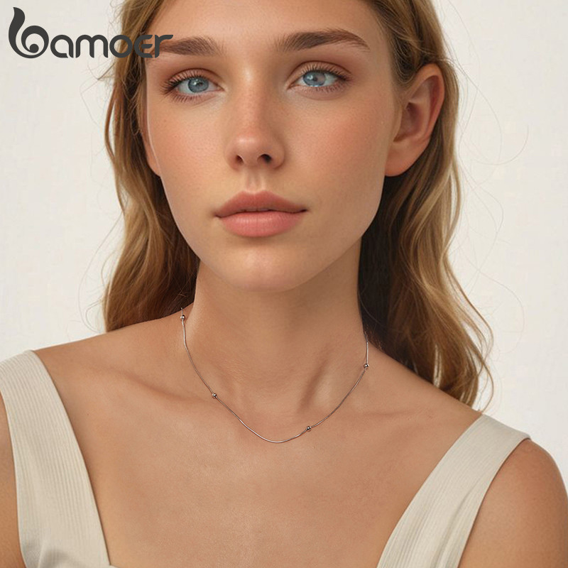 Bamoer 925 Prata Esterlina Colar Cobra Osso Grânulo Jóias Presentes Para Mulher